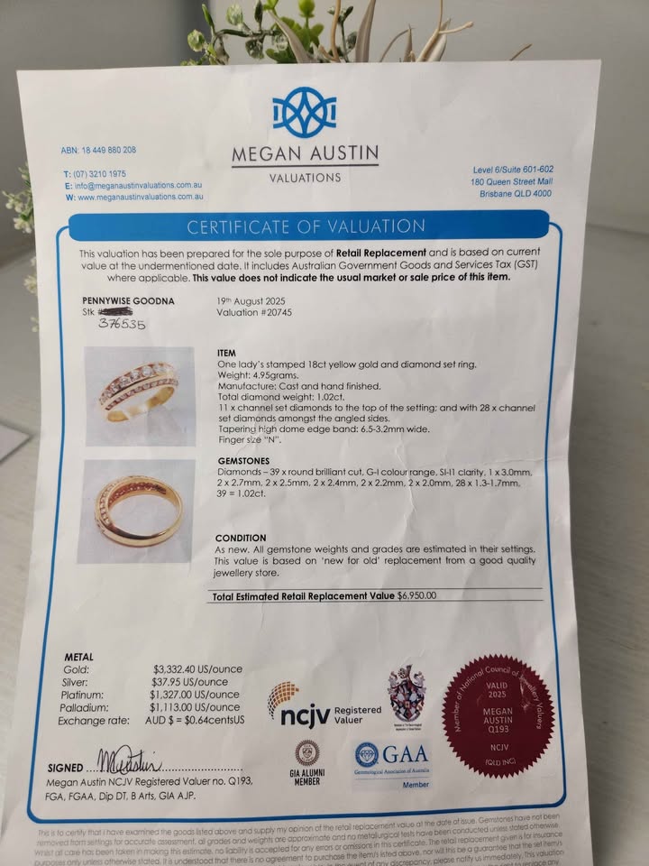 ** VALUATED** 18CT YELLOW GOLD DIAMOND RING