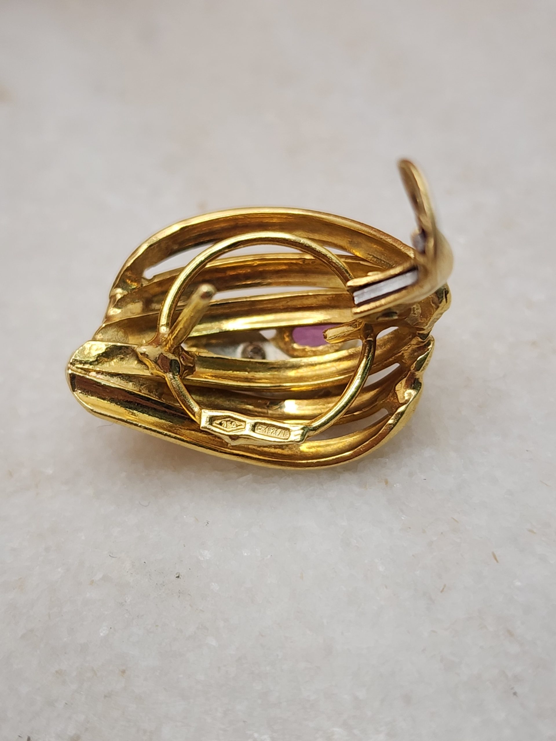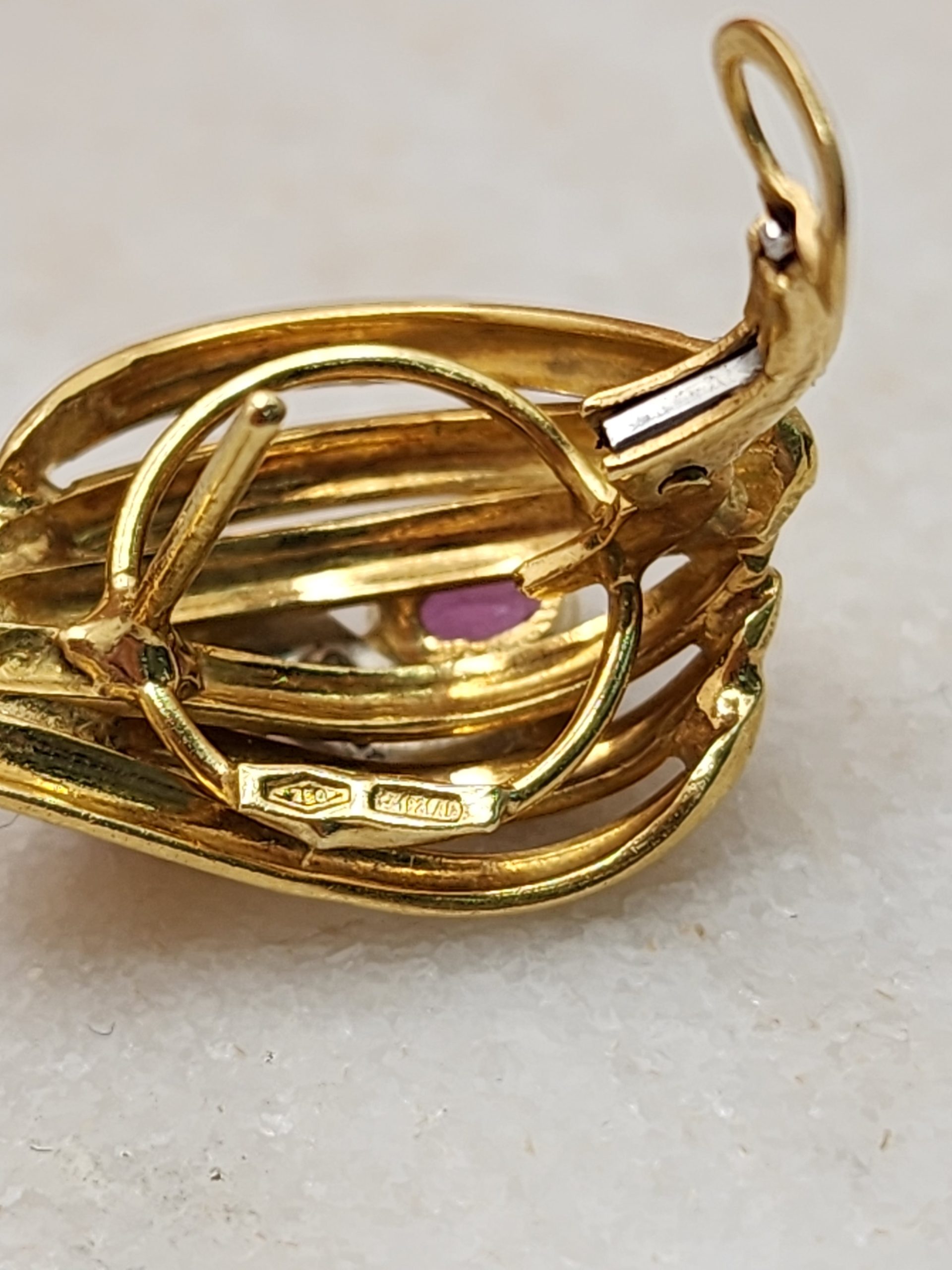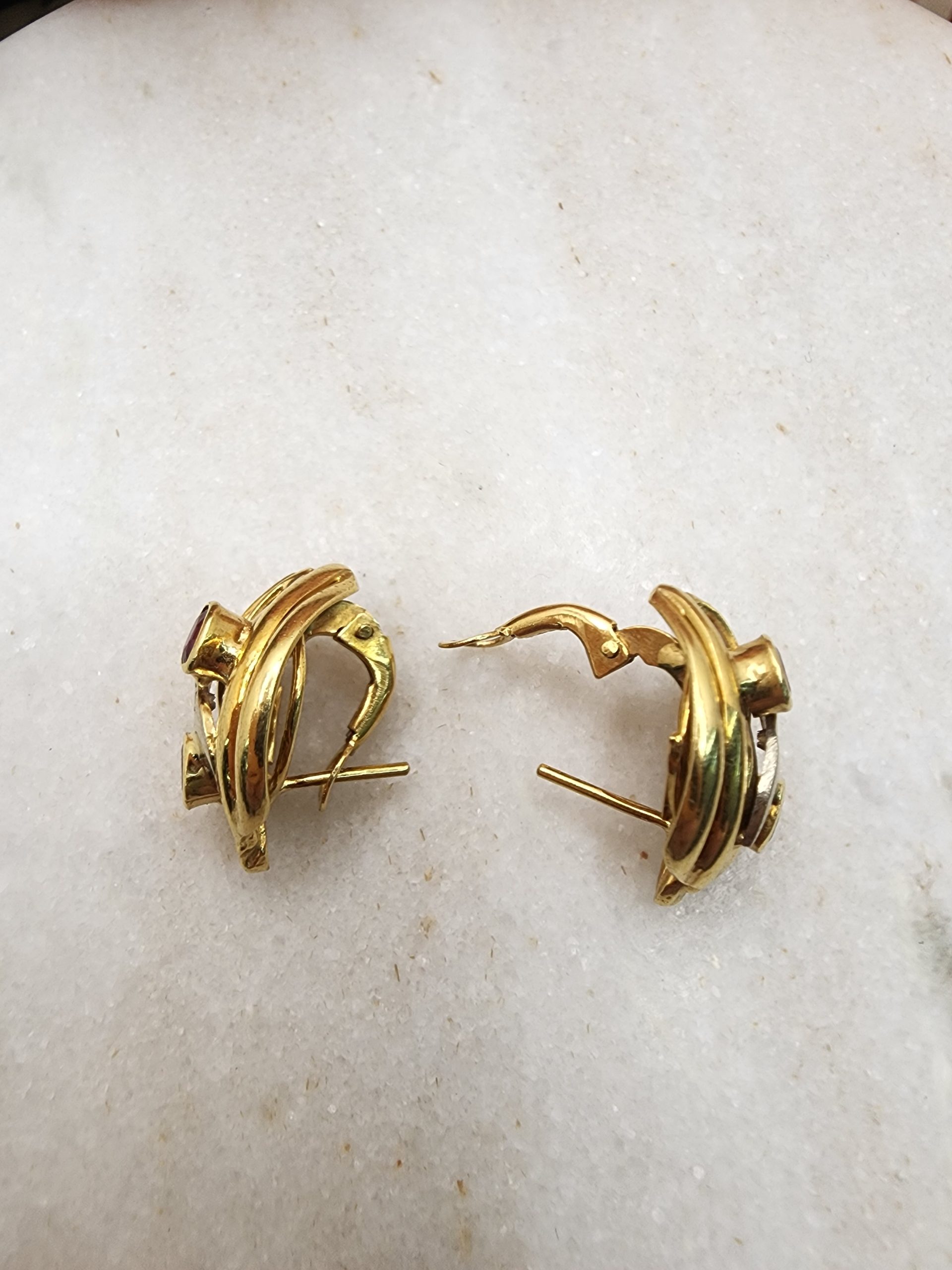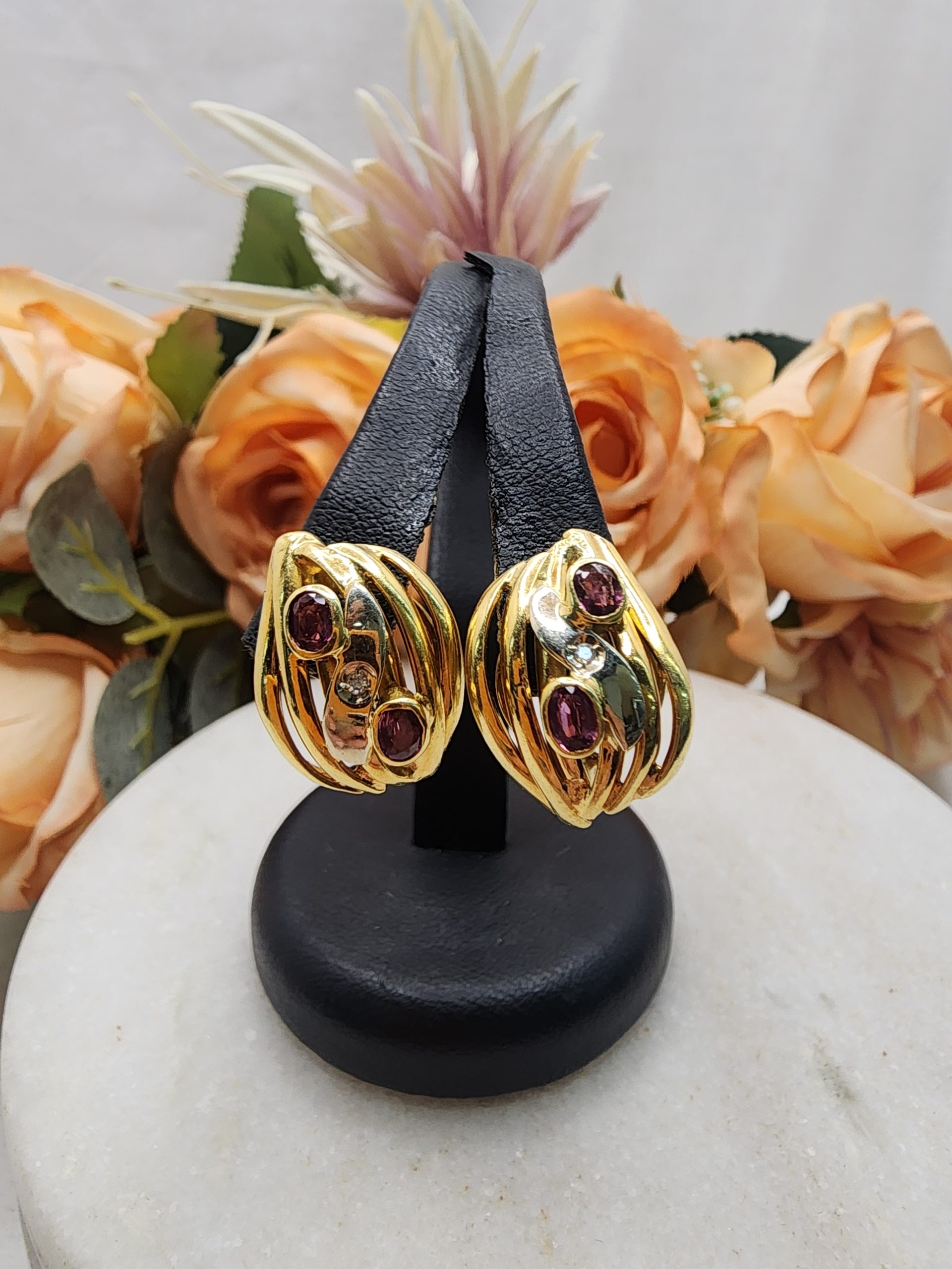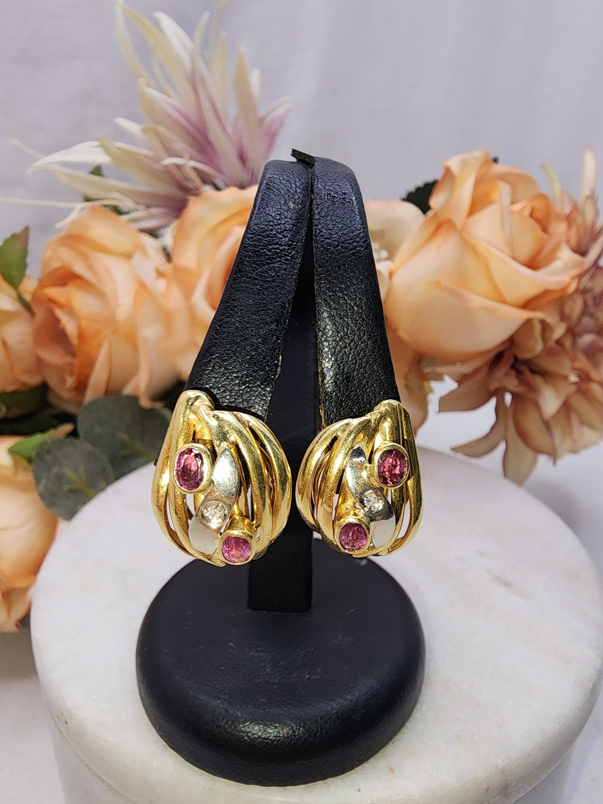 18CT Yellow Gold Earrings w/ Pink Sapphire & Diamond – IP401629
