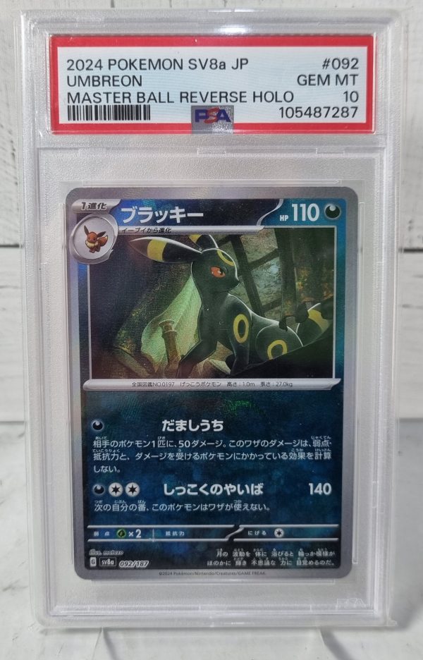 Model: 2024 Pokemon SV8a JP Umbreon Master Ball Reverse Holo PS10 GEM MT