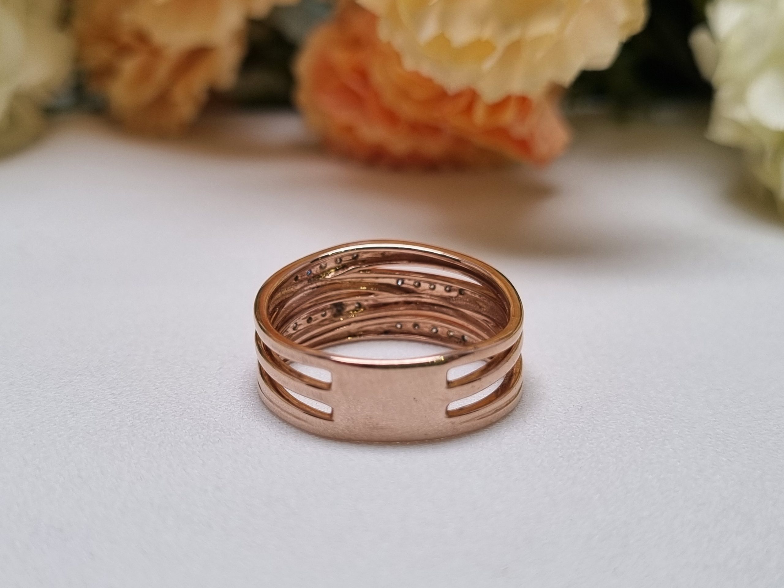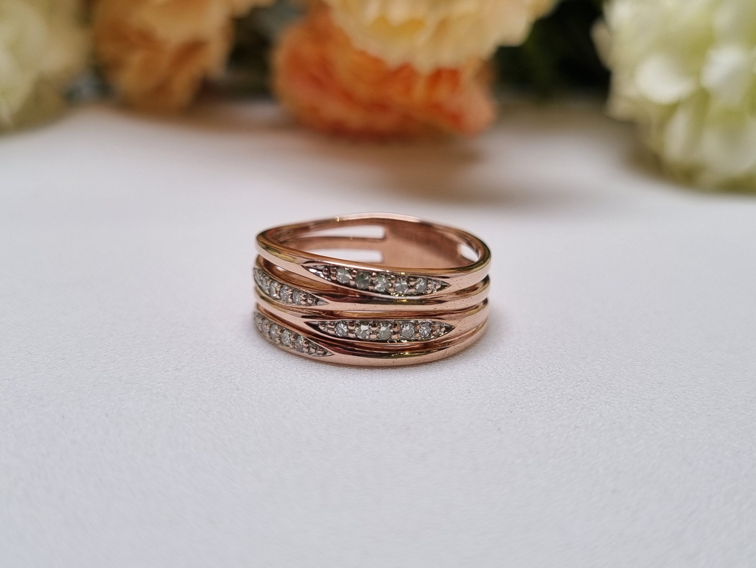 This Pre-Loved 9ct Rose Gold Layered Channel Set Ring is in great condition and presents very well.