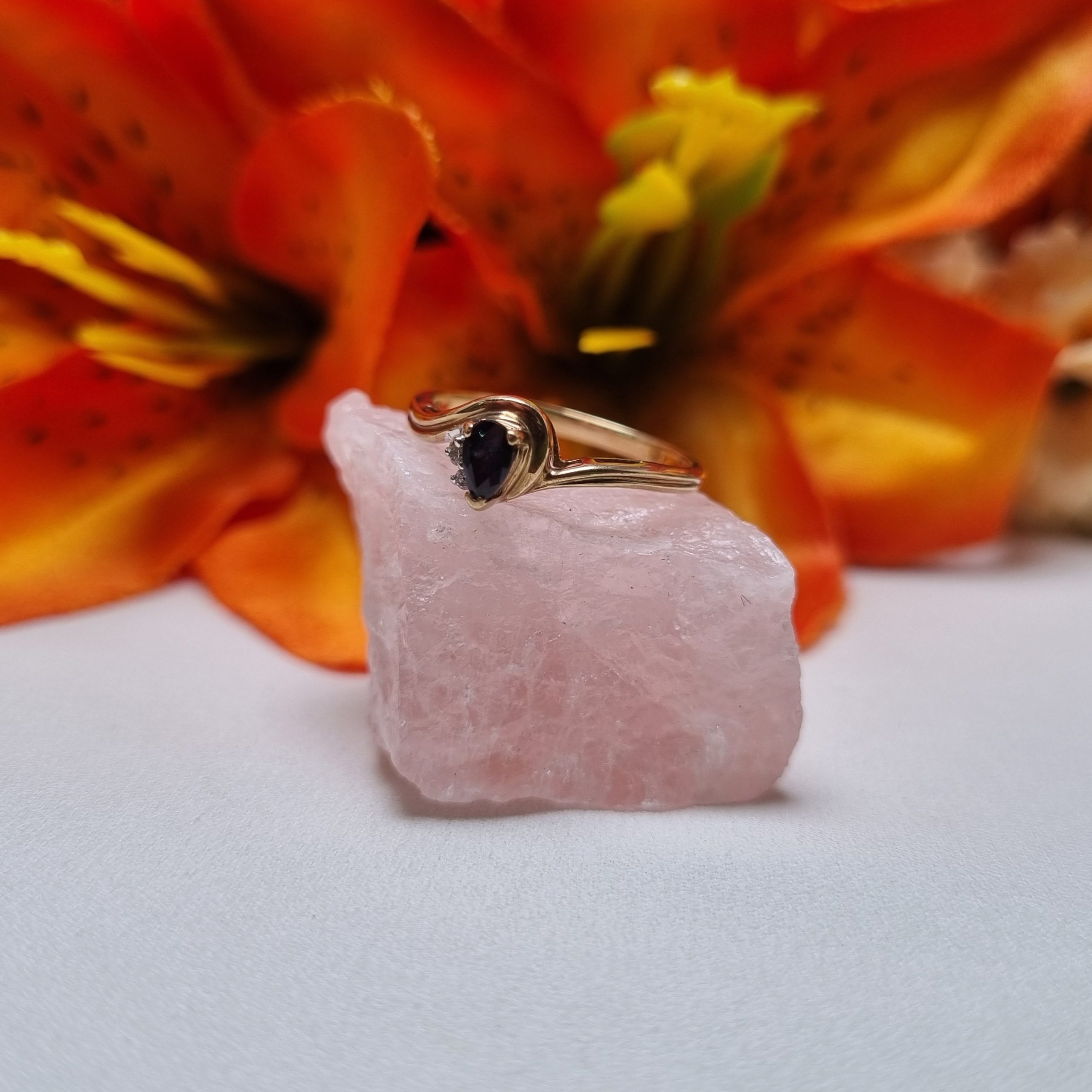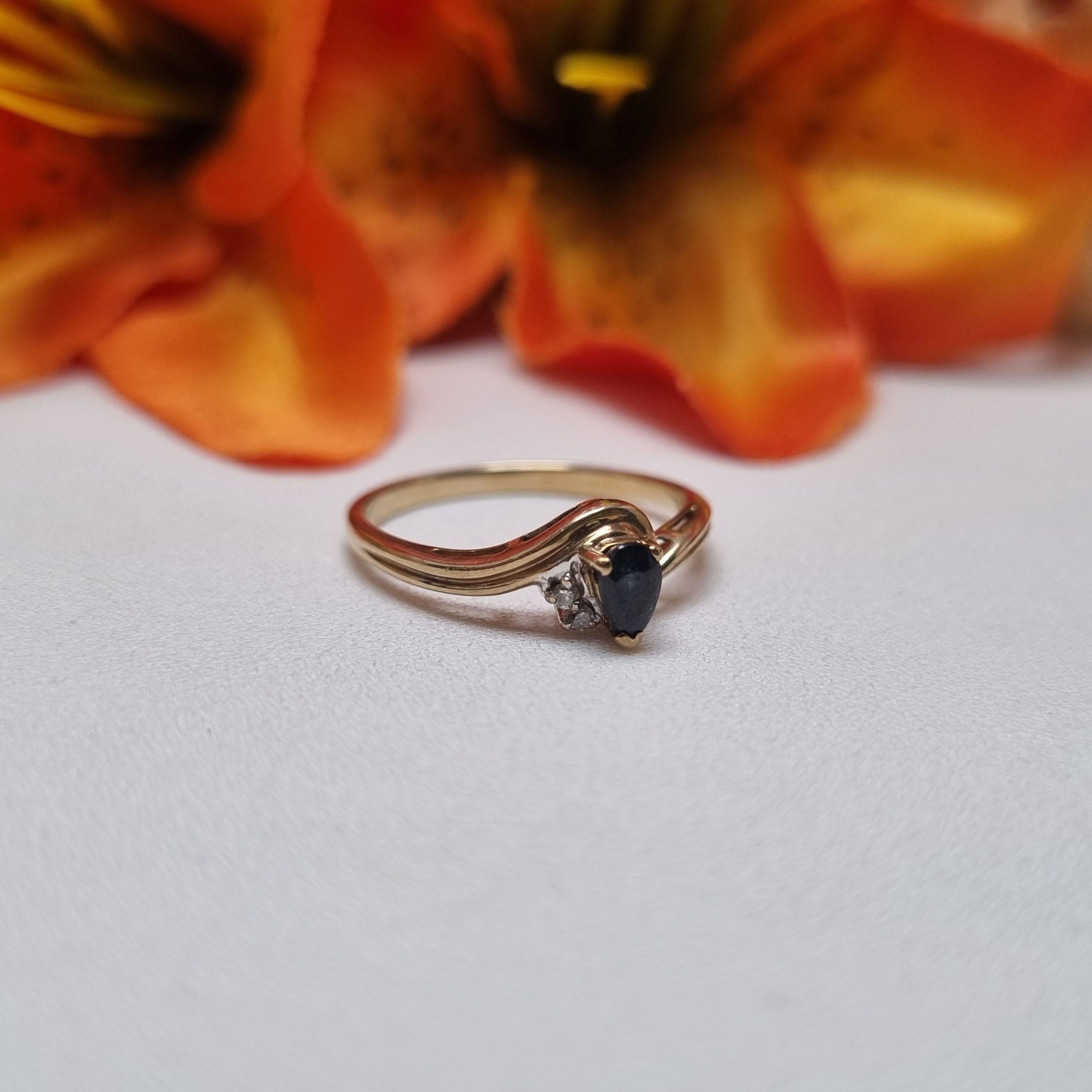 This Pre-Loved 9ct Yellow Gold Blue Stone Bypass Ring is in great condition and presents very well.