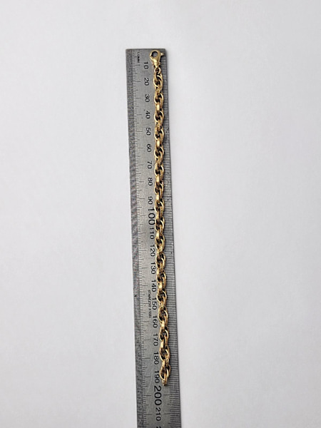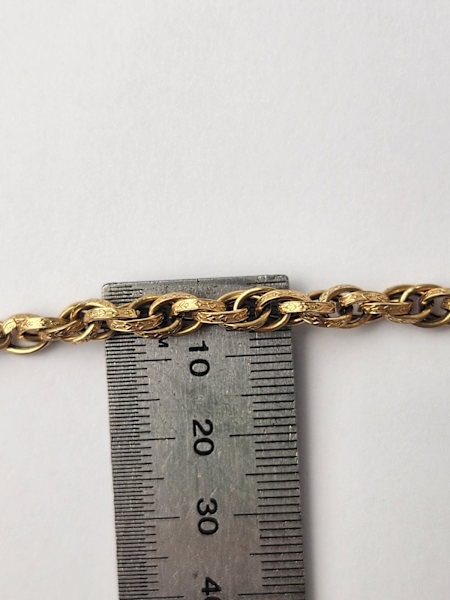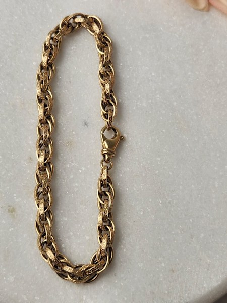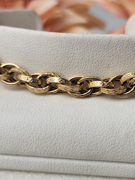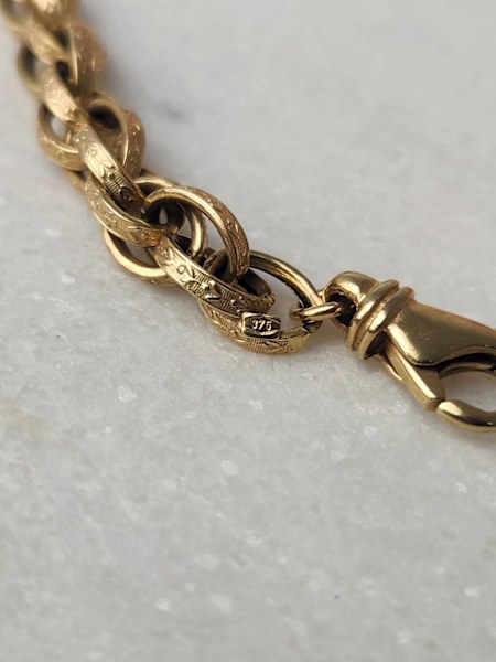 9ct Yellow gold rope like bracelet with flower design on links.