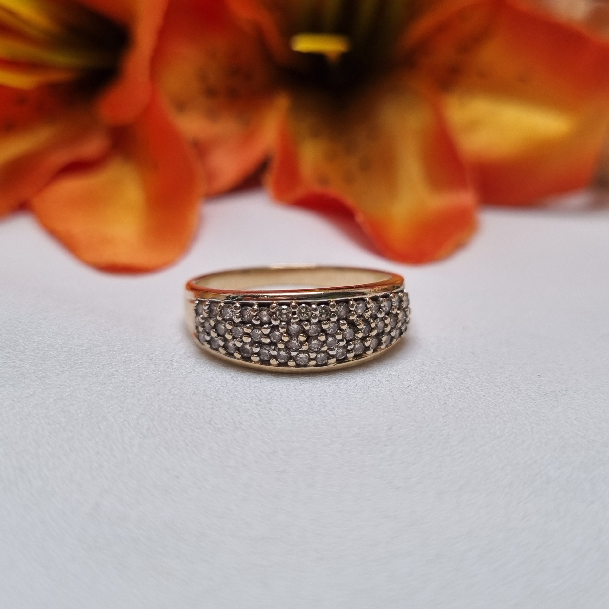 This Pre-Loved 9ct Yellow Gold Cluster Band is in great condition and presents very well.