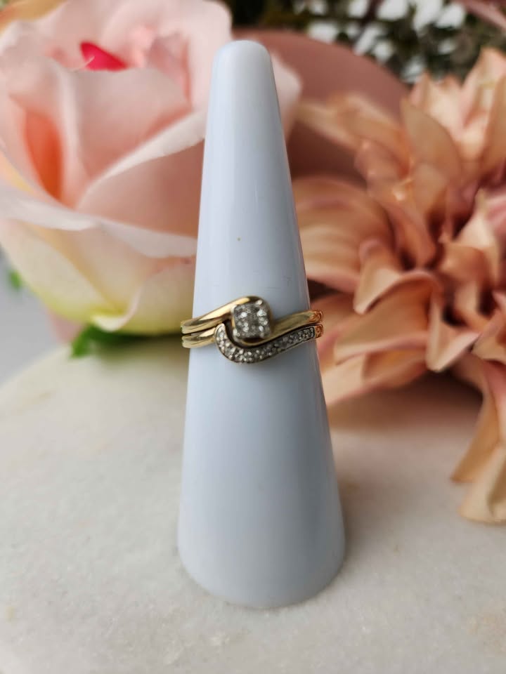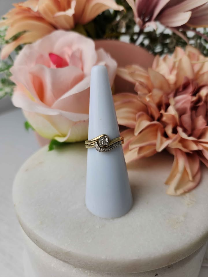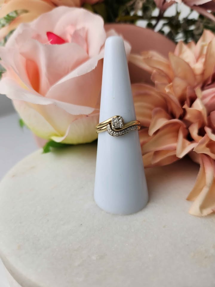 LADIES 9CT  YELLOW GOLD DIAMOND  RING SET