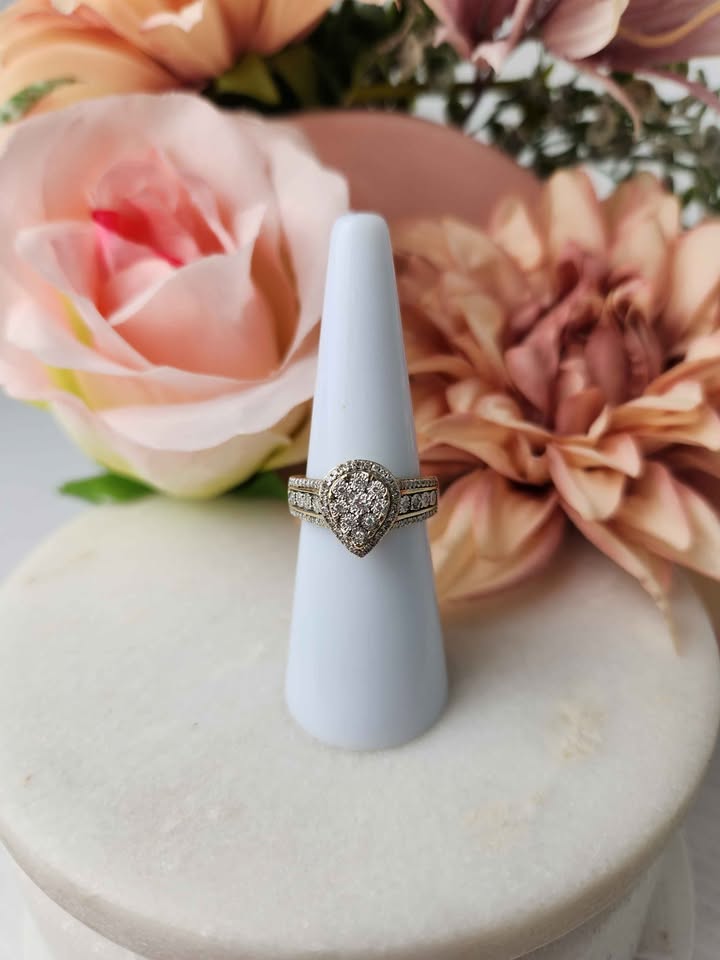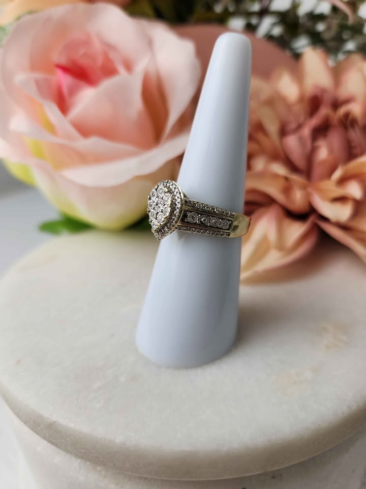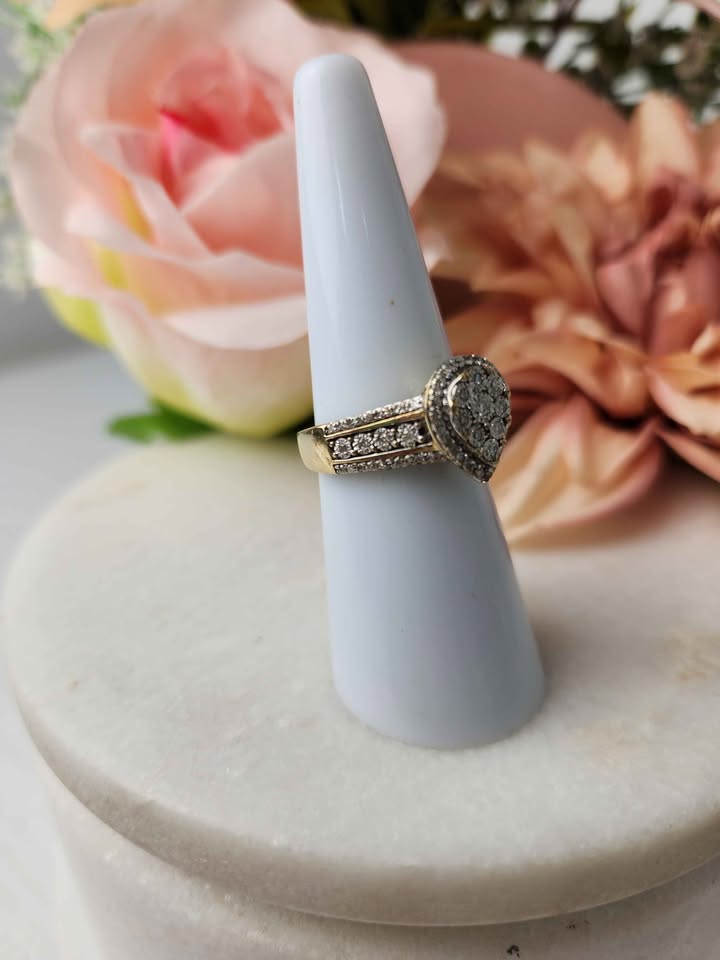 LADIES 9CT YELLOW GOLD DIAMOND RING