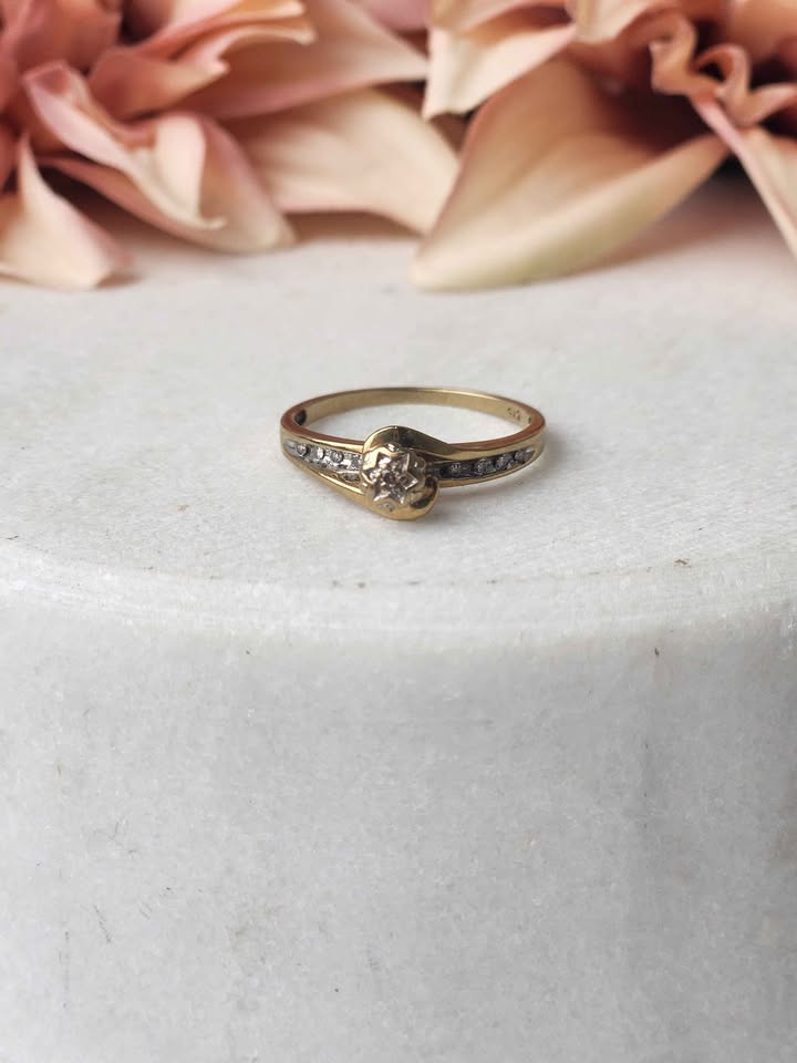 9CT YELLOW GOLD DIAMOND RING