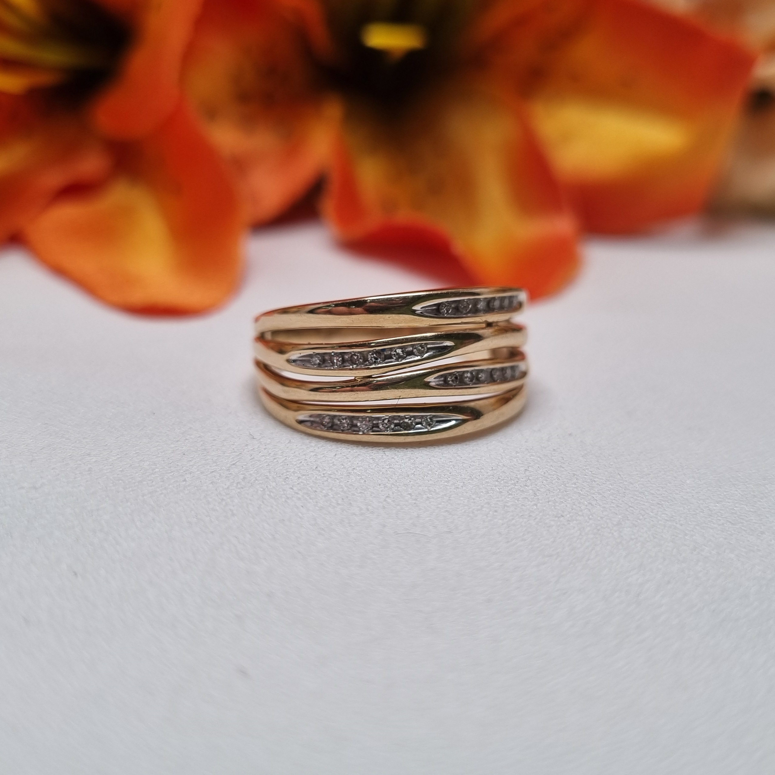 This Pre-Loved 9ct Yellow Gold Layered Channel Set Ring is in great condition and presents very well.