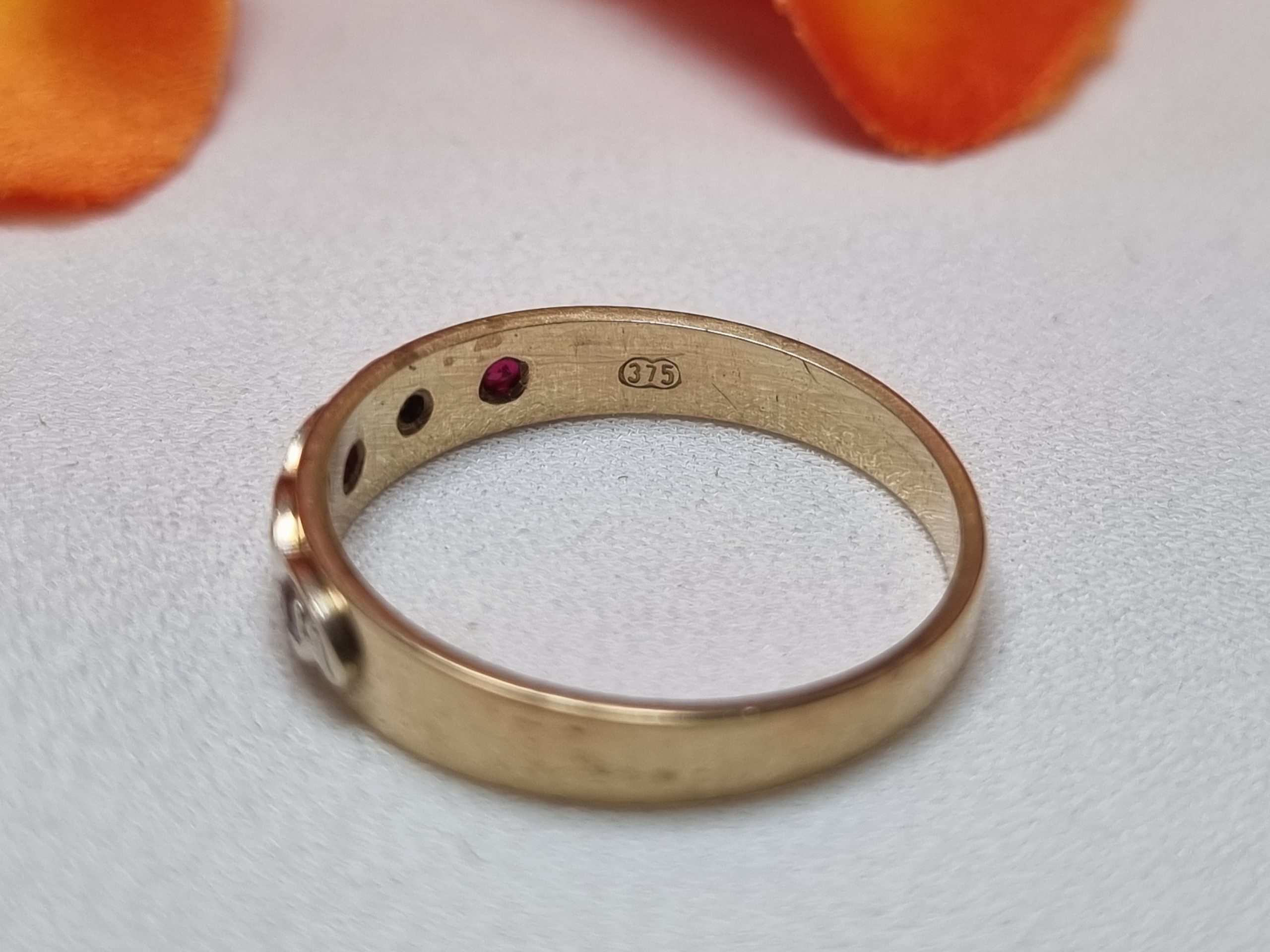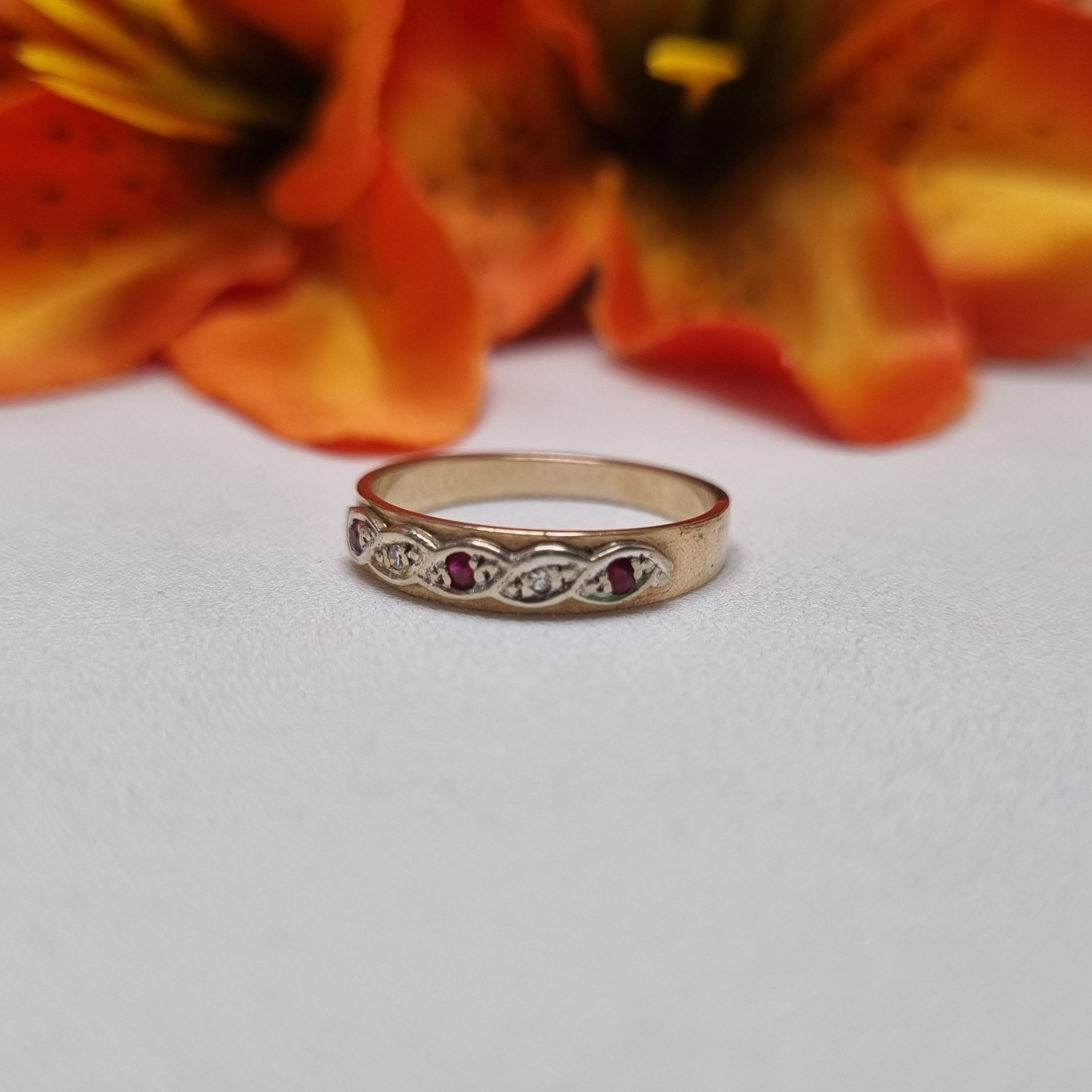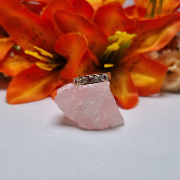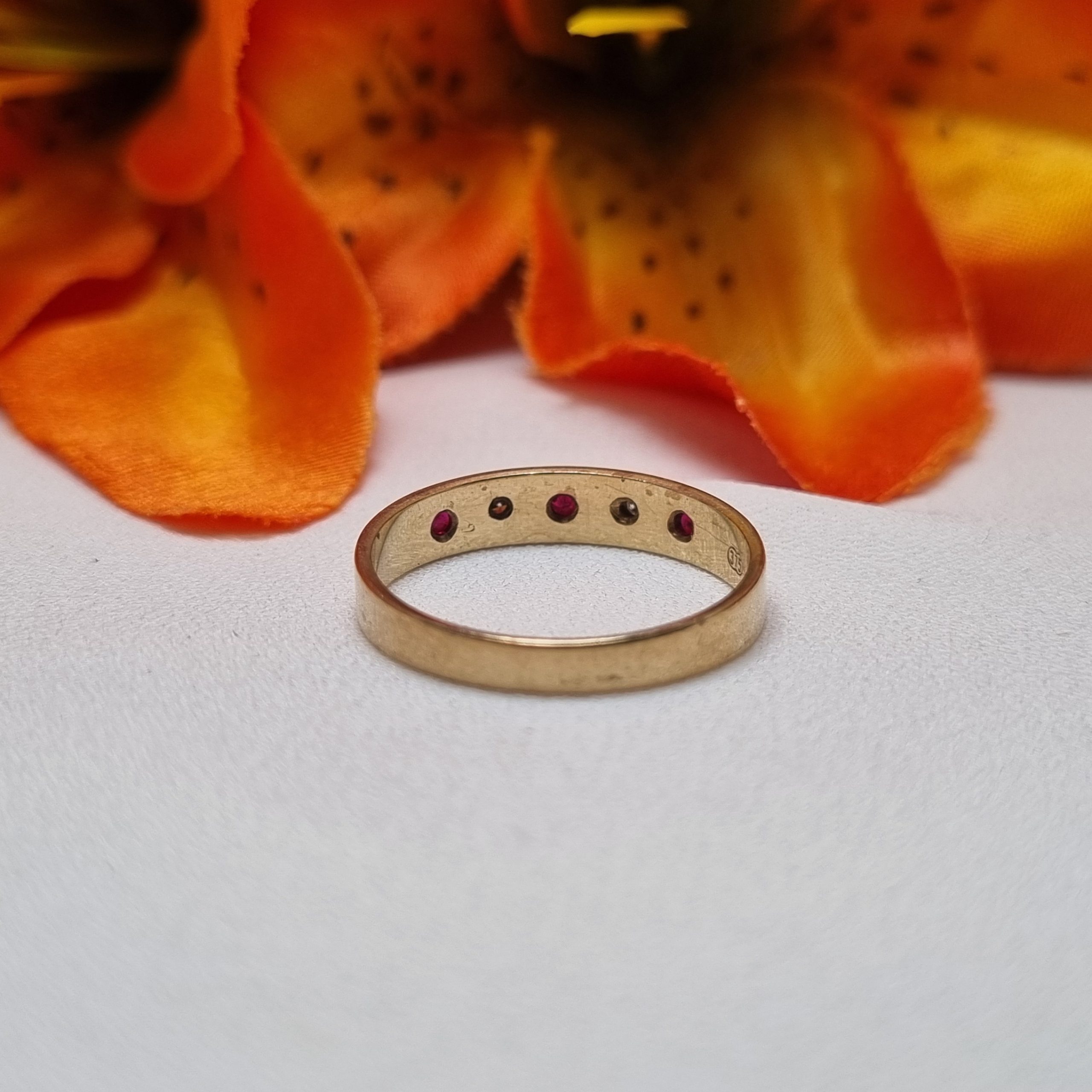 This Pre-Loved 9ct Yellow Gold Red Stone Band is in great condition and presents very well.
