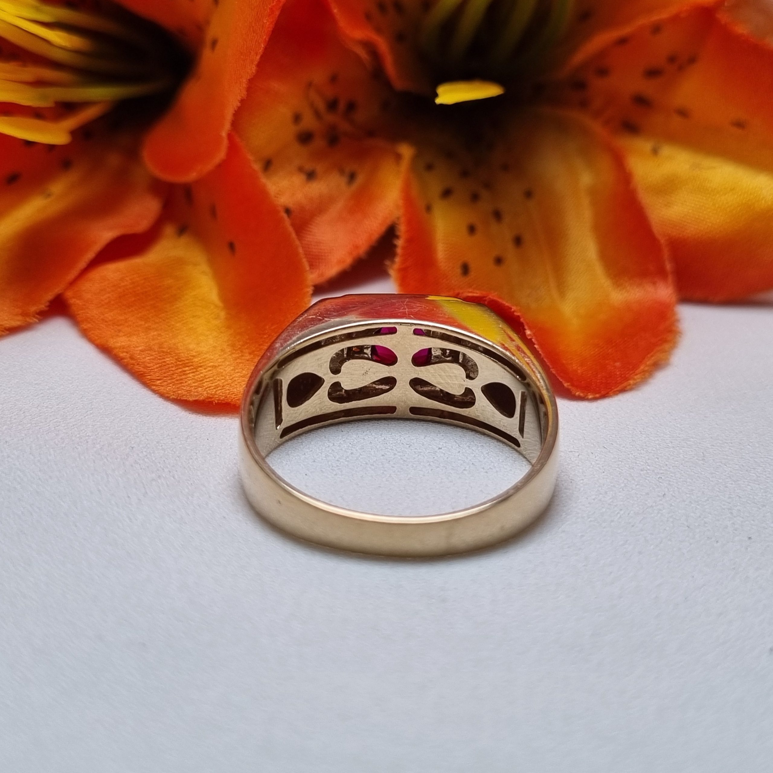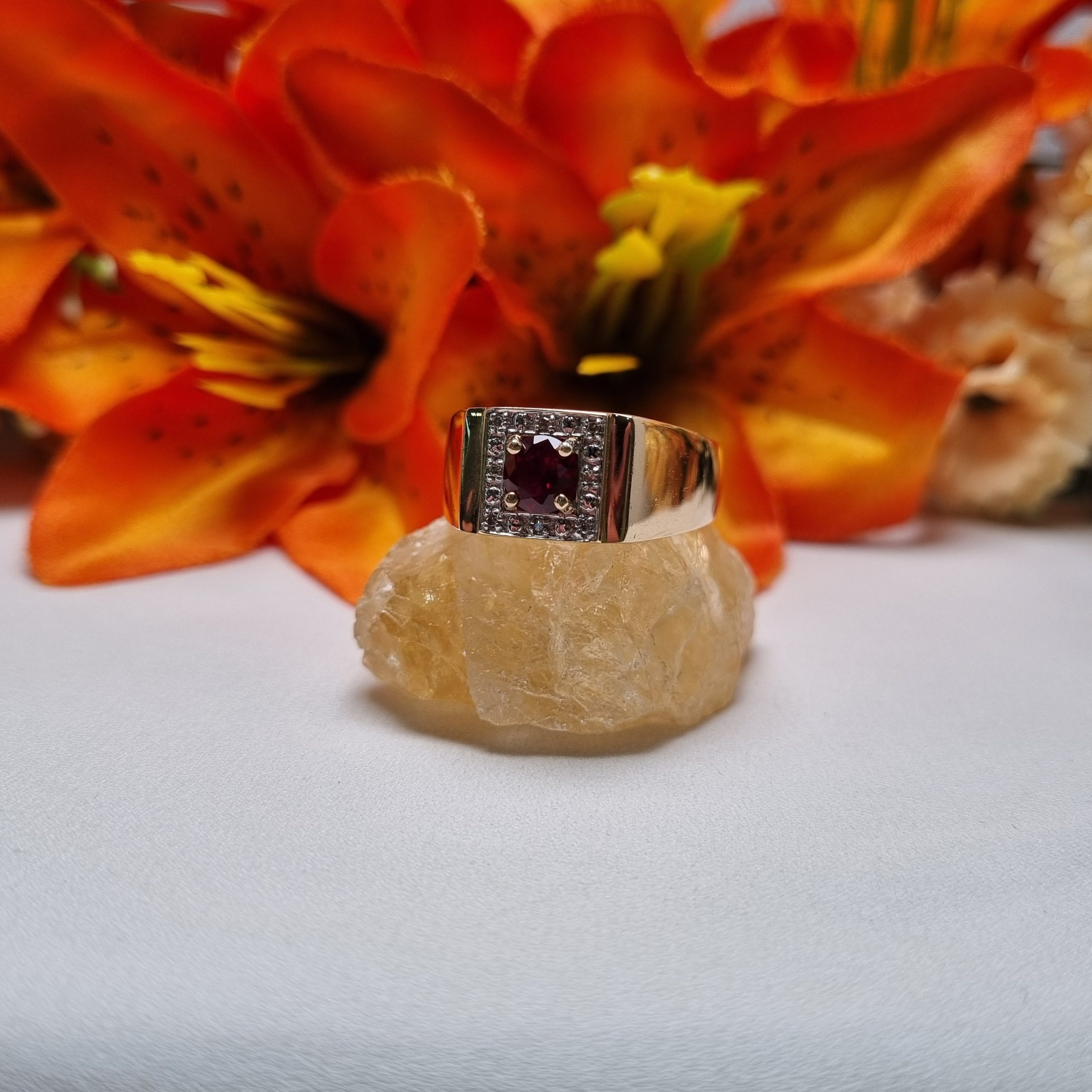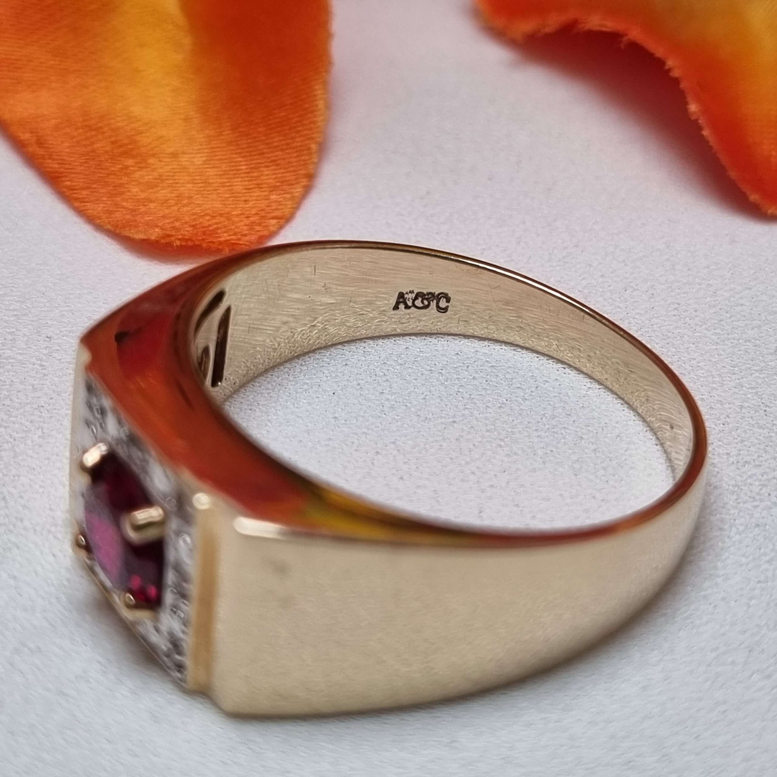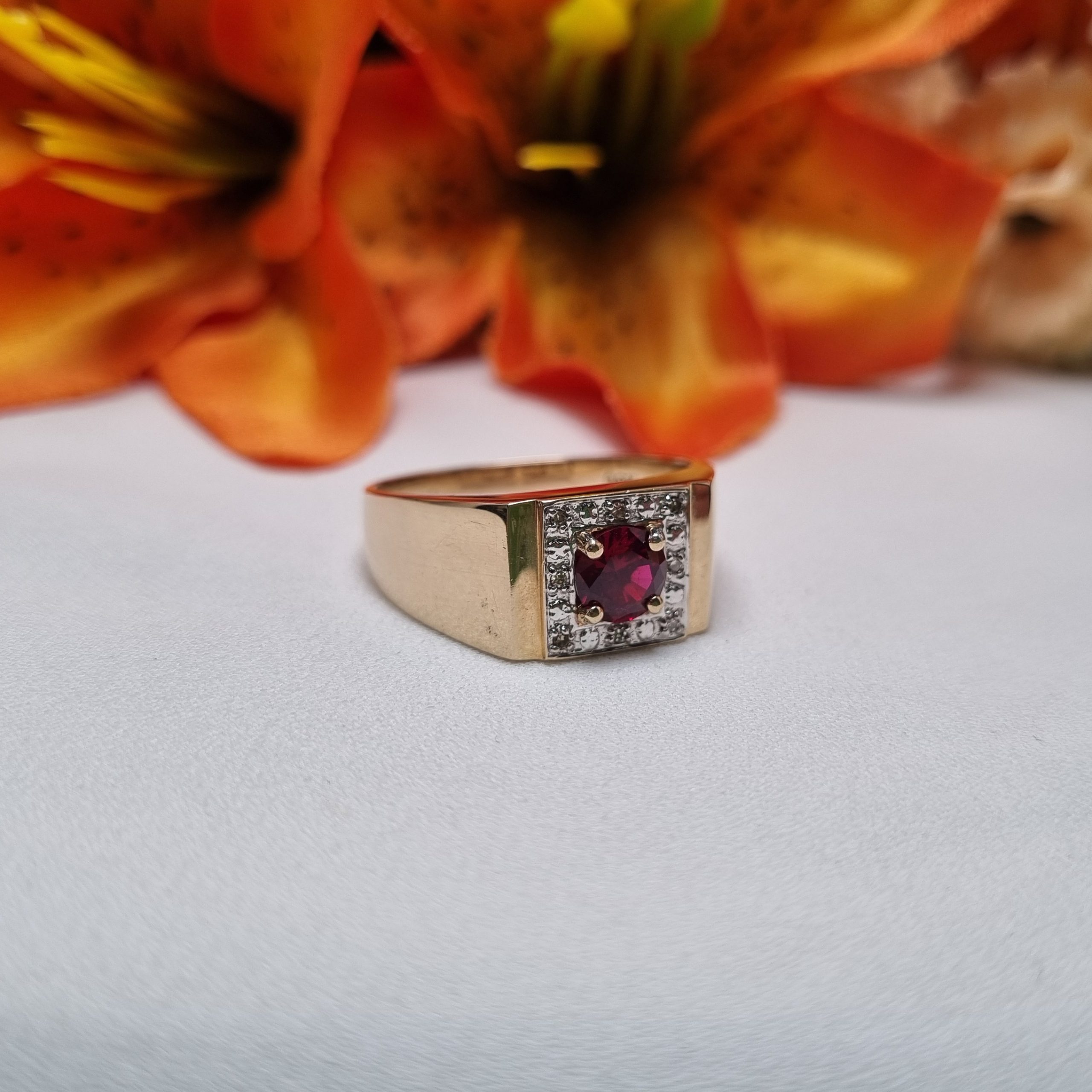 This Pre-Loved 9ct Yellow Gold Red Stone Halo Ring is in great condition and presents very well.