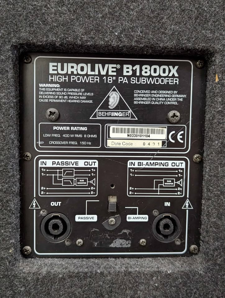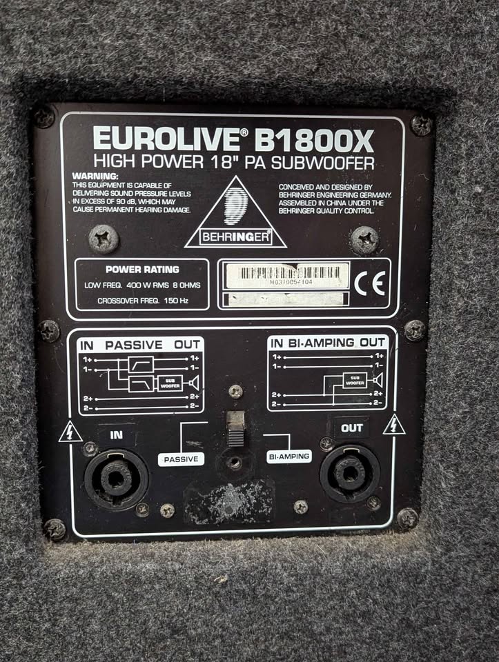 Behringer Eurolive 18″ PA Subwoofers (1800w/B1800x) – BP415841