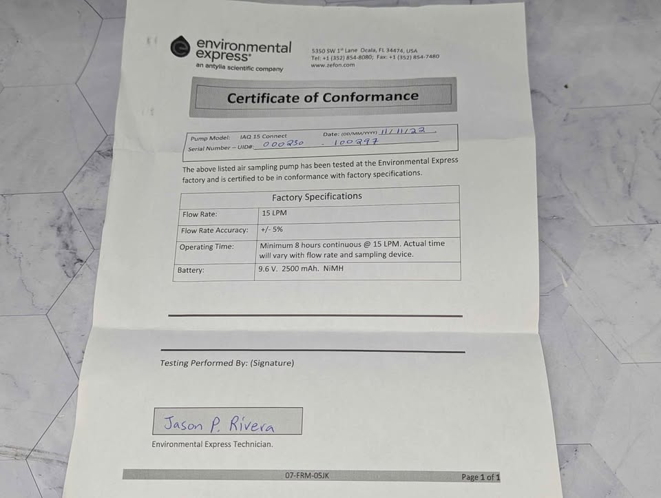 Genuine, Pre-Loved Environmental Express IAQ 15 Connect Portable Air Sampling Pump Kit