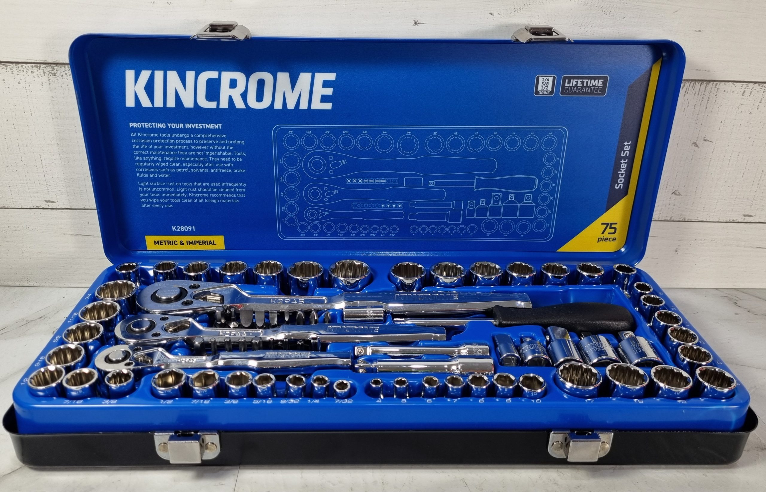 This Pre-Loved Kincrome 75 Piece Metric and Imperial Socket Set is in great condition and great working order.