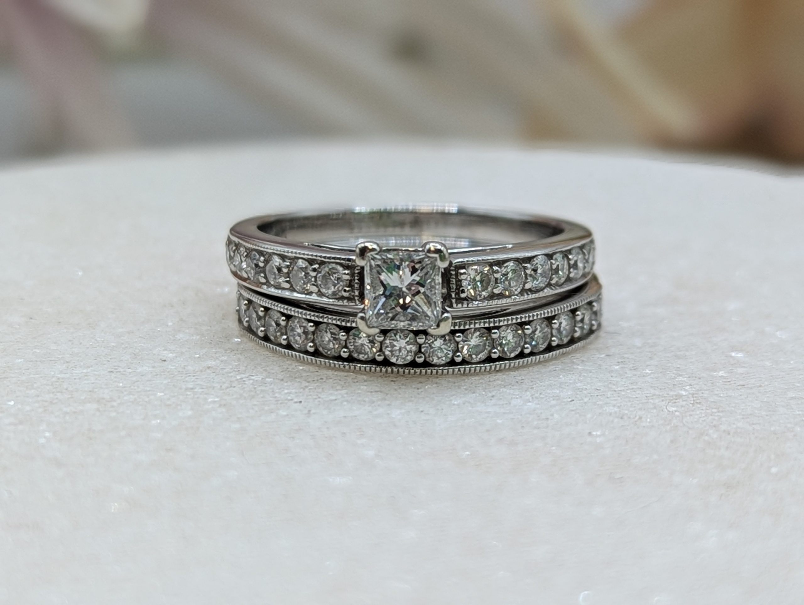 Genuine, Pre-Loved Ladies 18CT White Gold Diamond Bridal Ring Set (6.8gms)