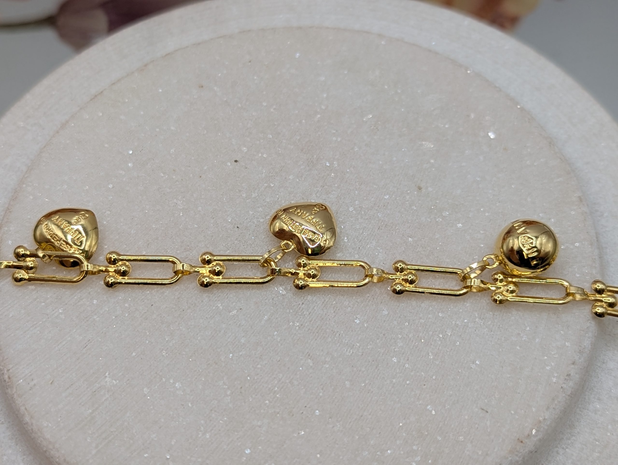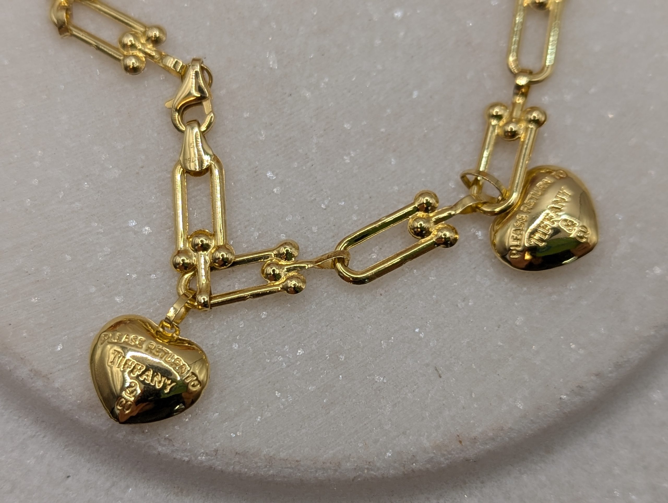 Genuine, Pre-Loved Ladies 18CT Yellow Gold Dangly Charm Paperclip Bracelet (4.7gms)
