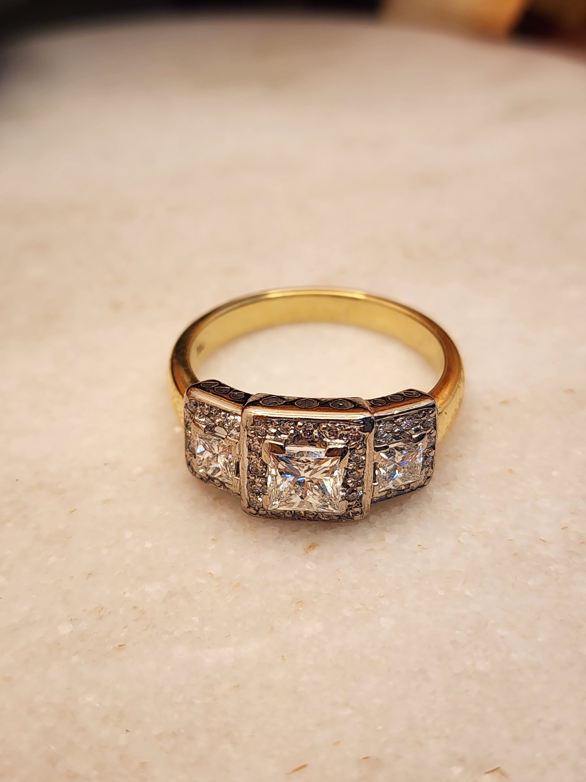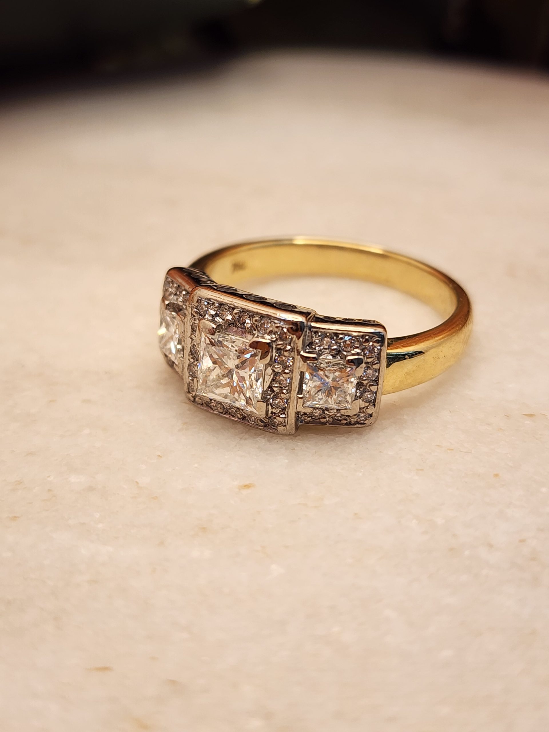 Ladies 18K Yellow and White Gold Triple Halo Diamond Ring – IP385629