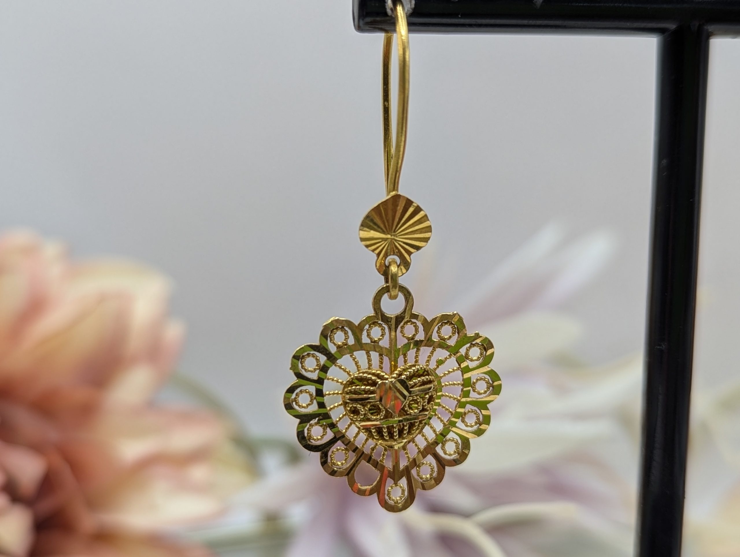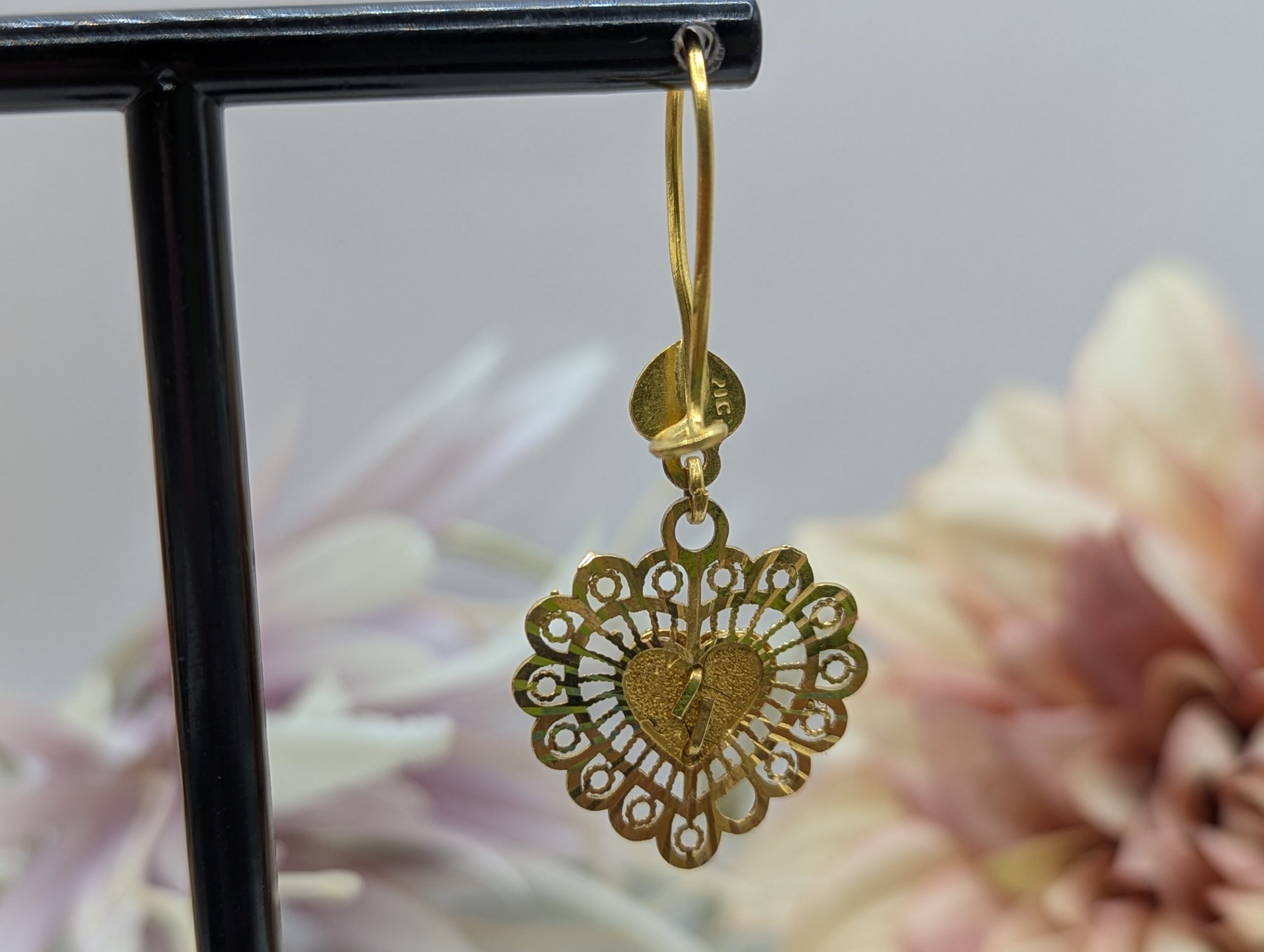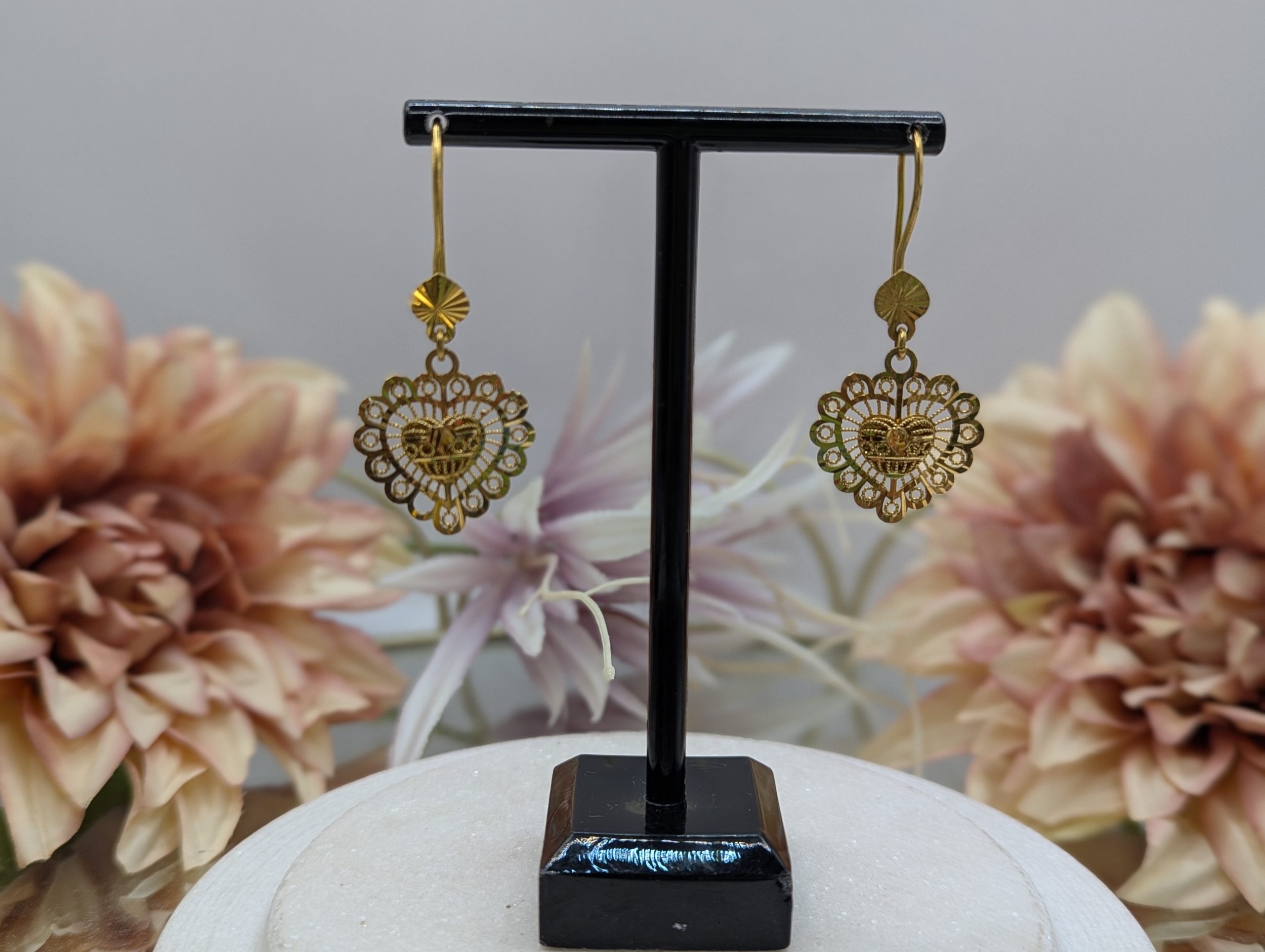 Genuine, Preloved Ladies 21CT Yellow Gold Heart Earrings (5.6gms)