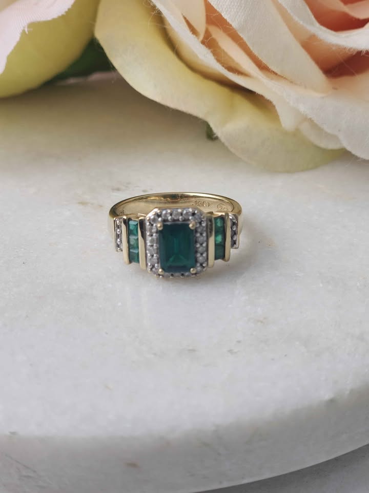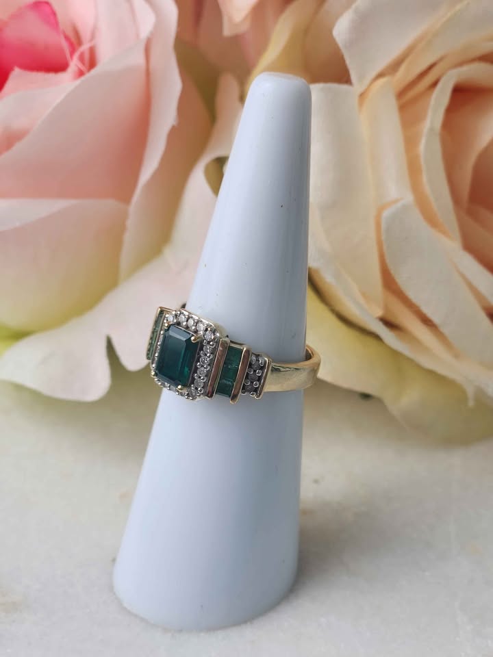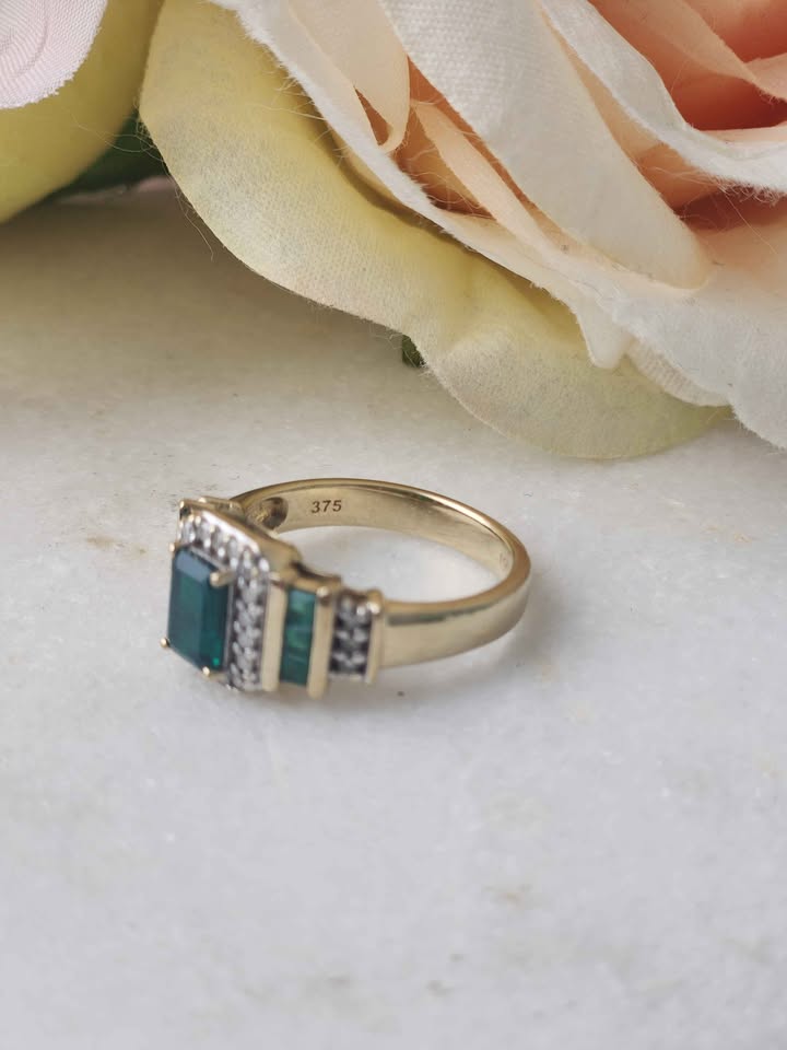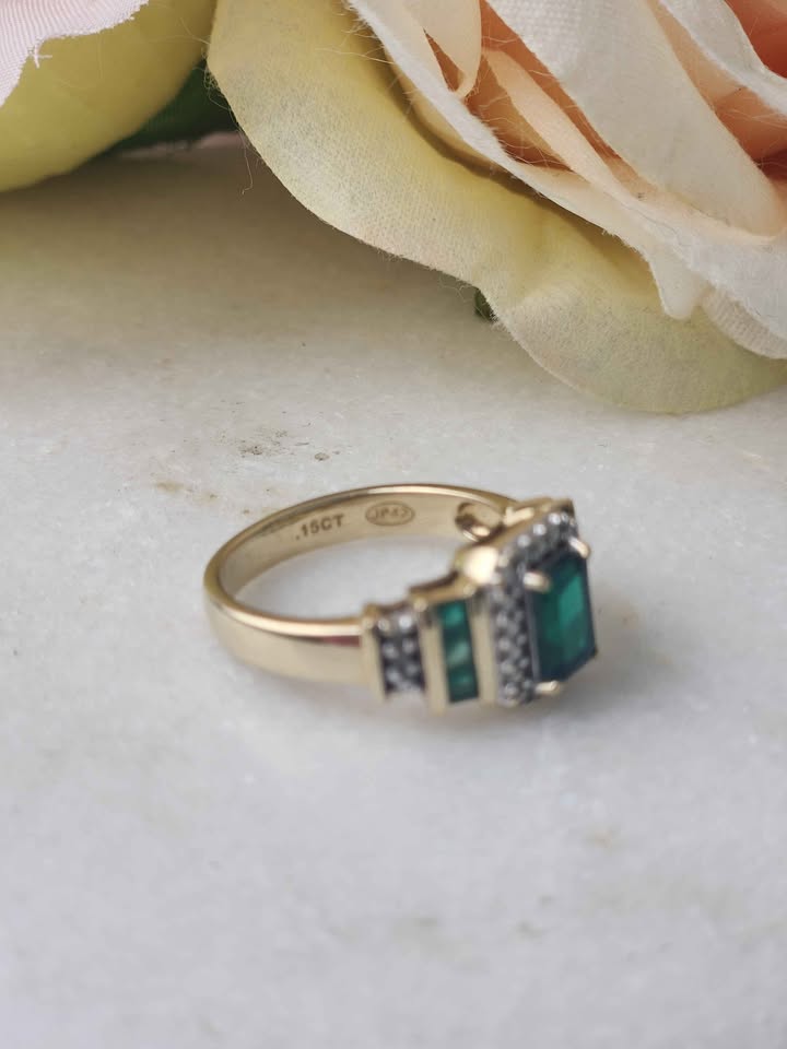 LADIES 9CT YELLOW GOLD DIAMOND RING