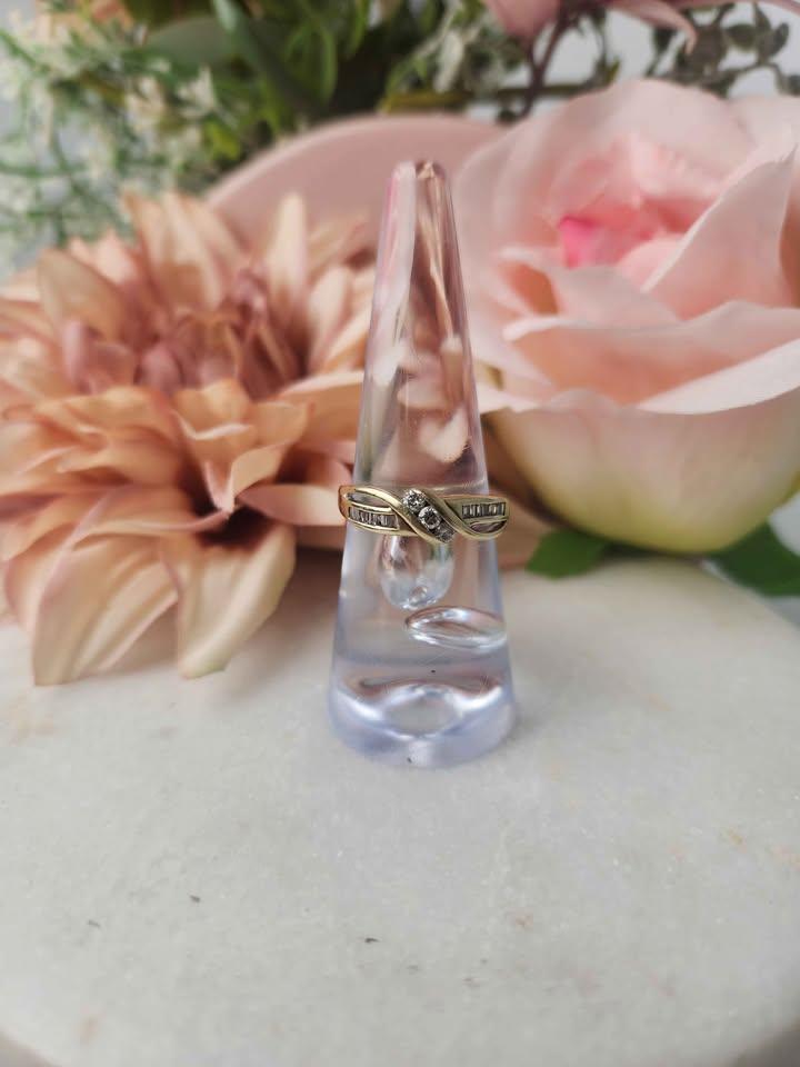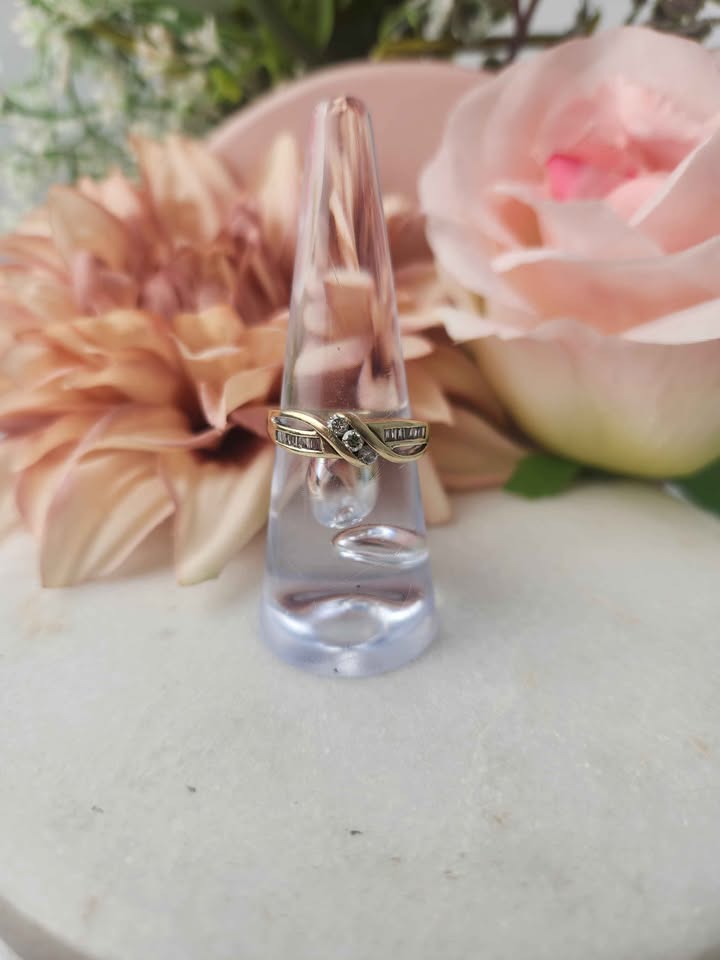 LADIES 9CT YELLOW GOLD DIAMOND RING