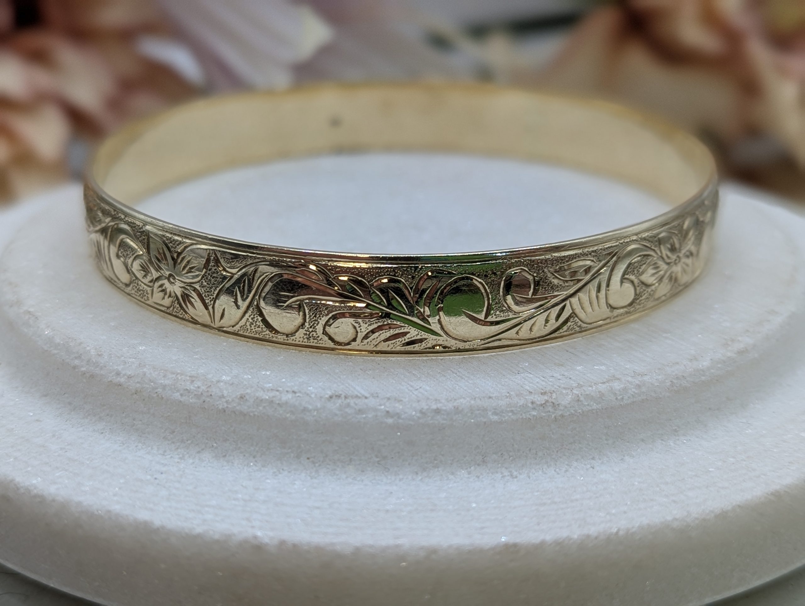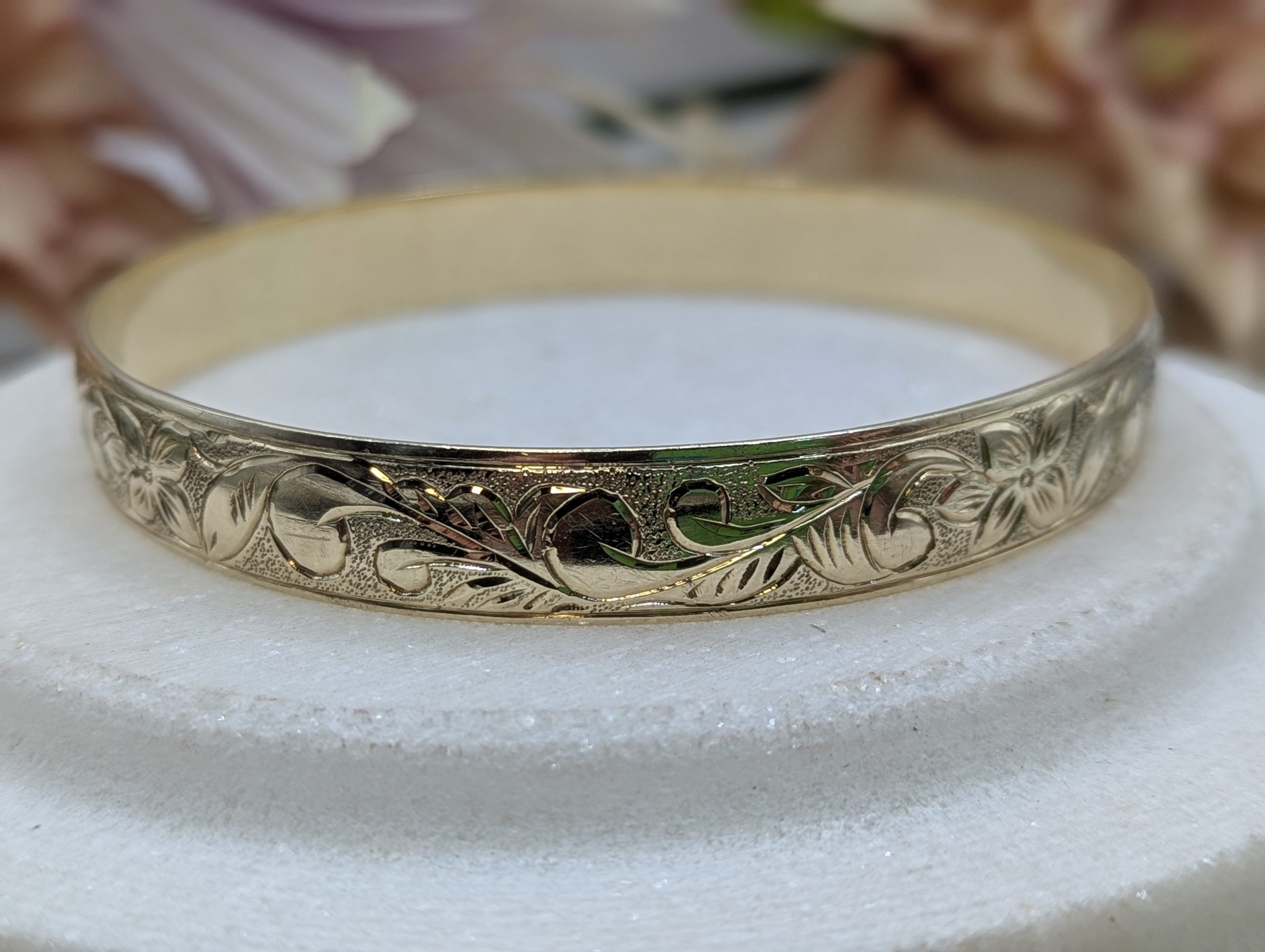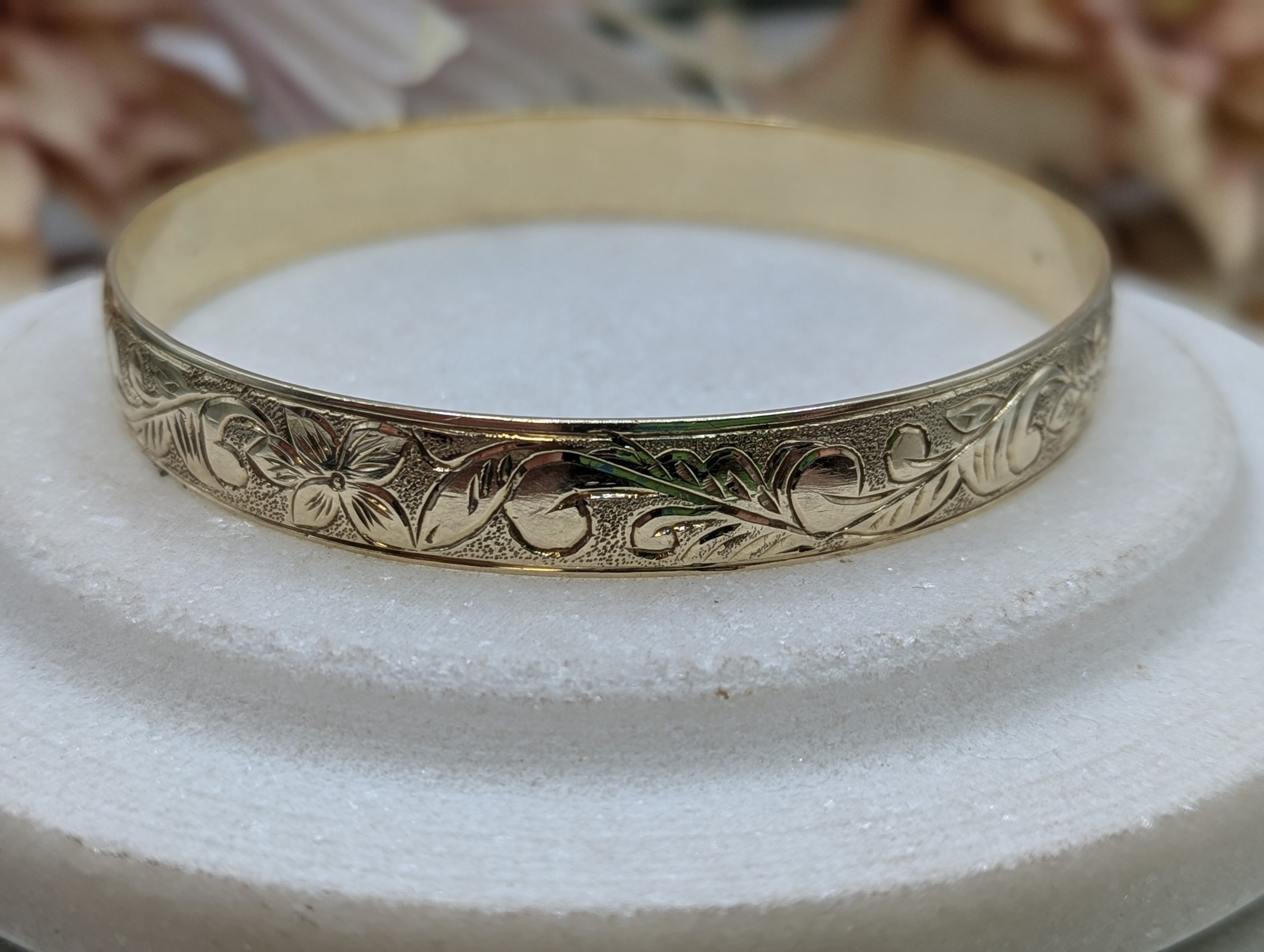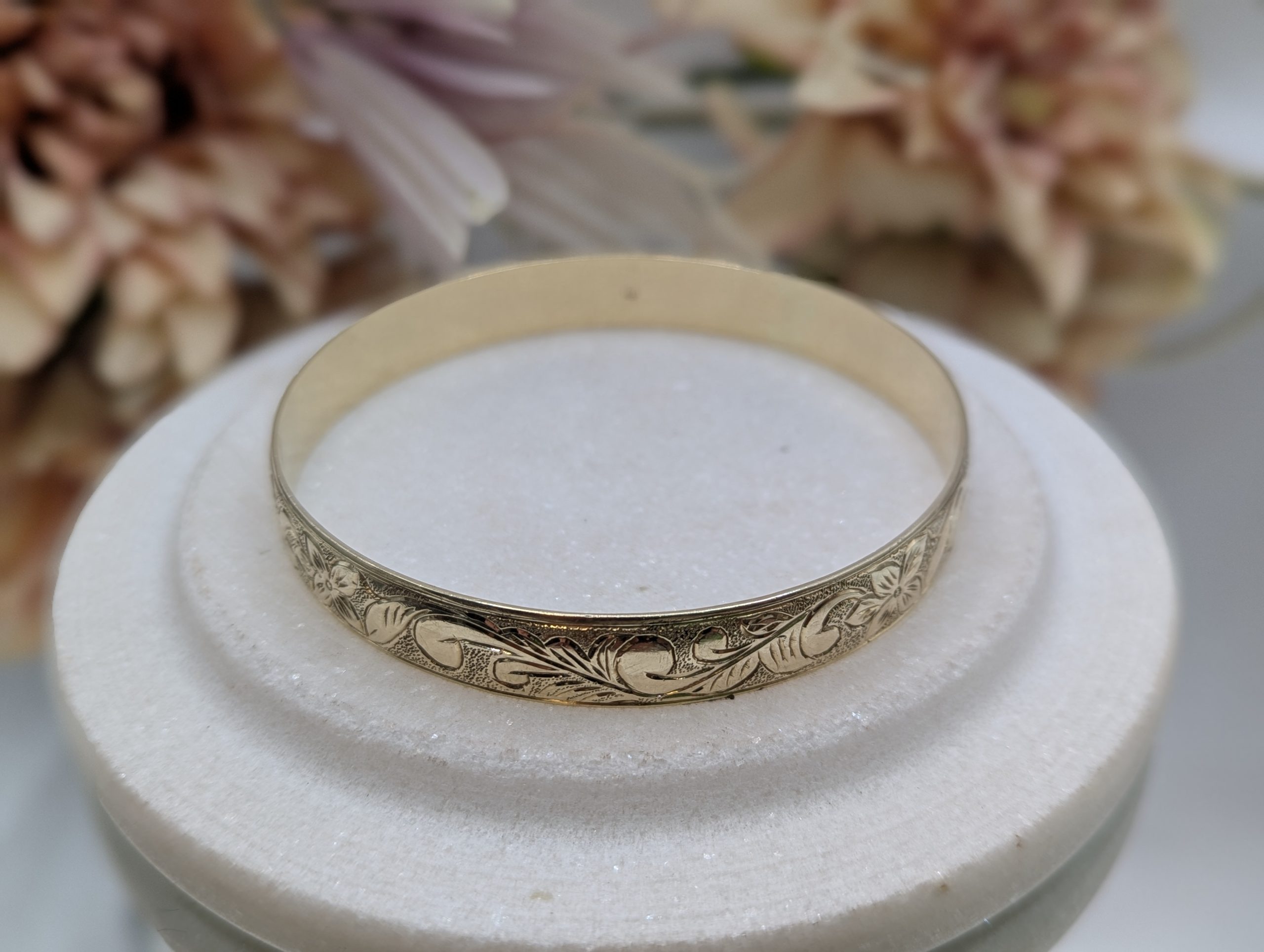 Genuine, Pre-Loved Ladies 9CT Yellow Gold Patterned Bangle (35.6gms)