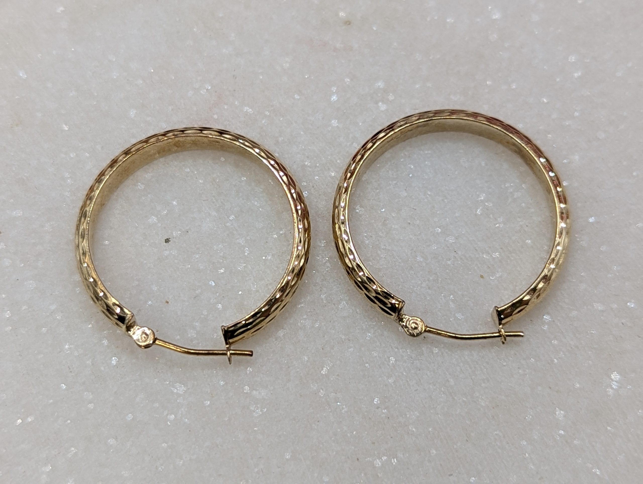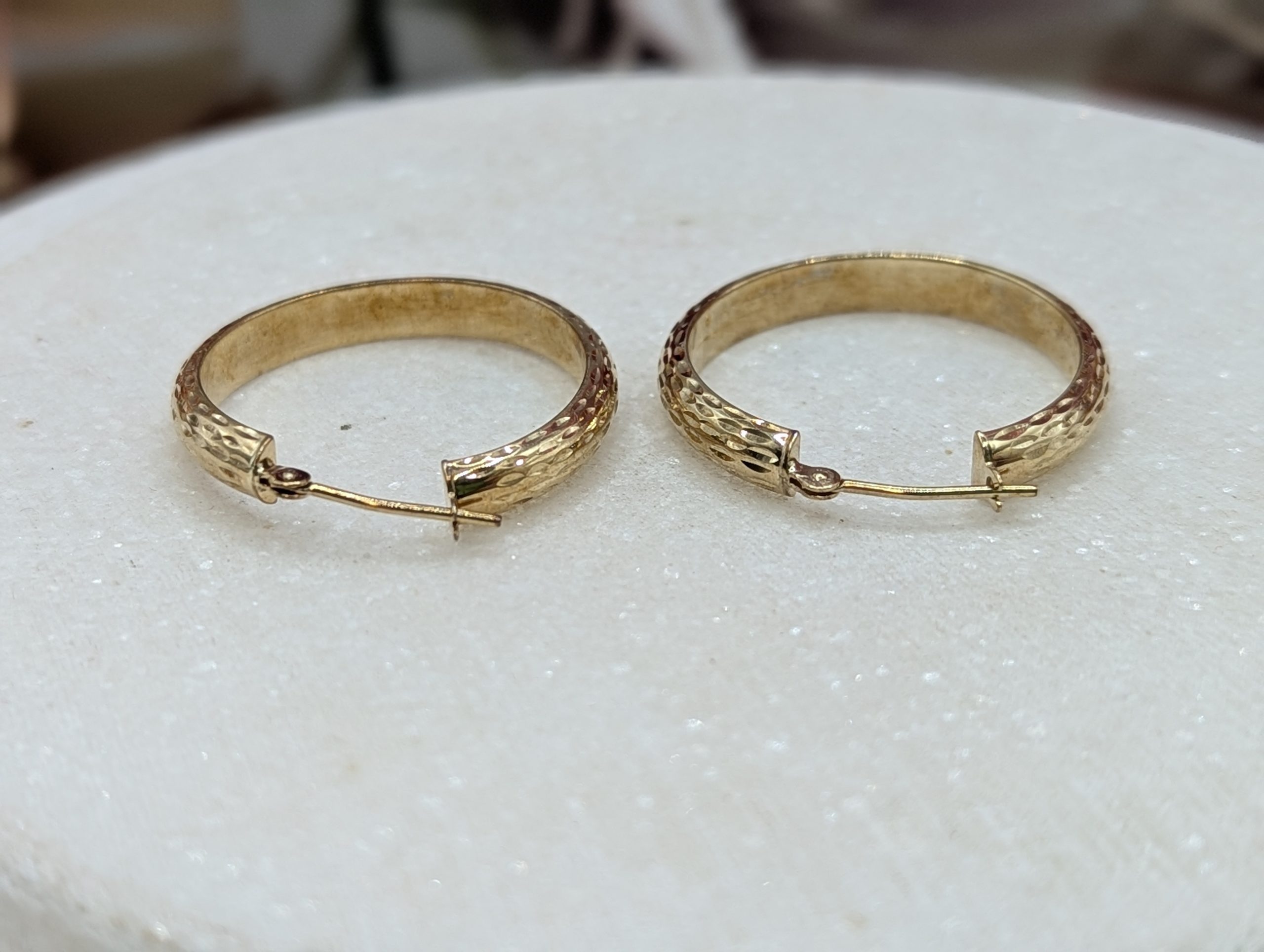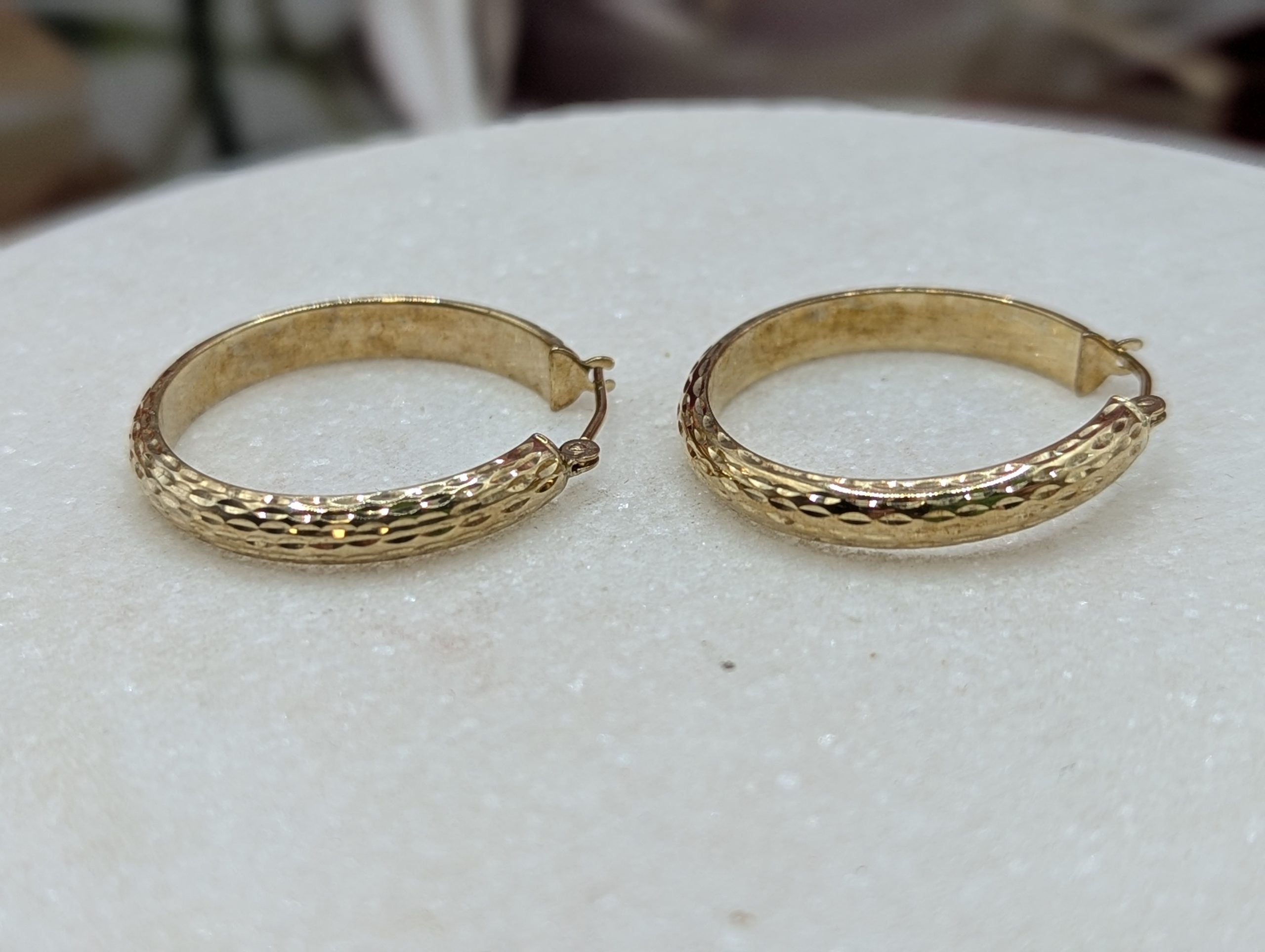 Genuine, Preloved Ladies 9CT Yellow Gold Patterned Hoop Earrings (1.7gms)