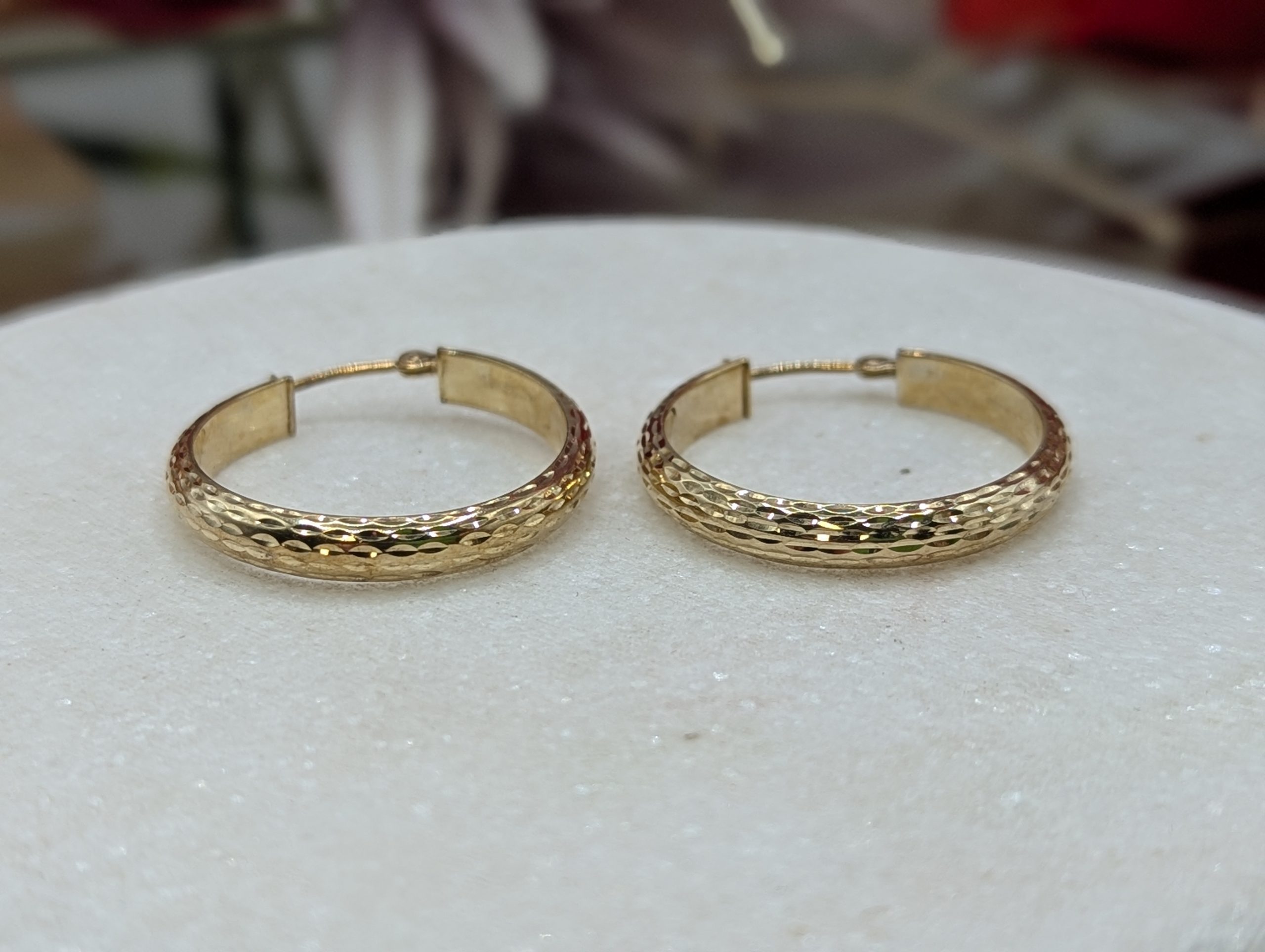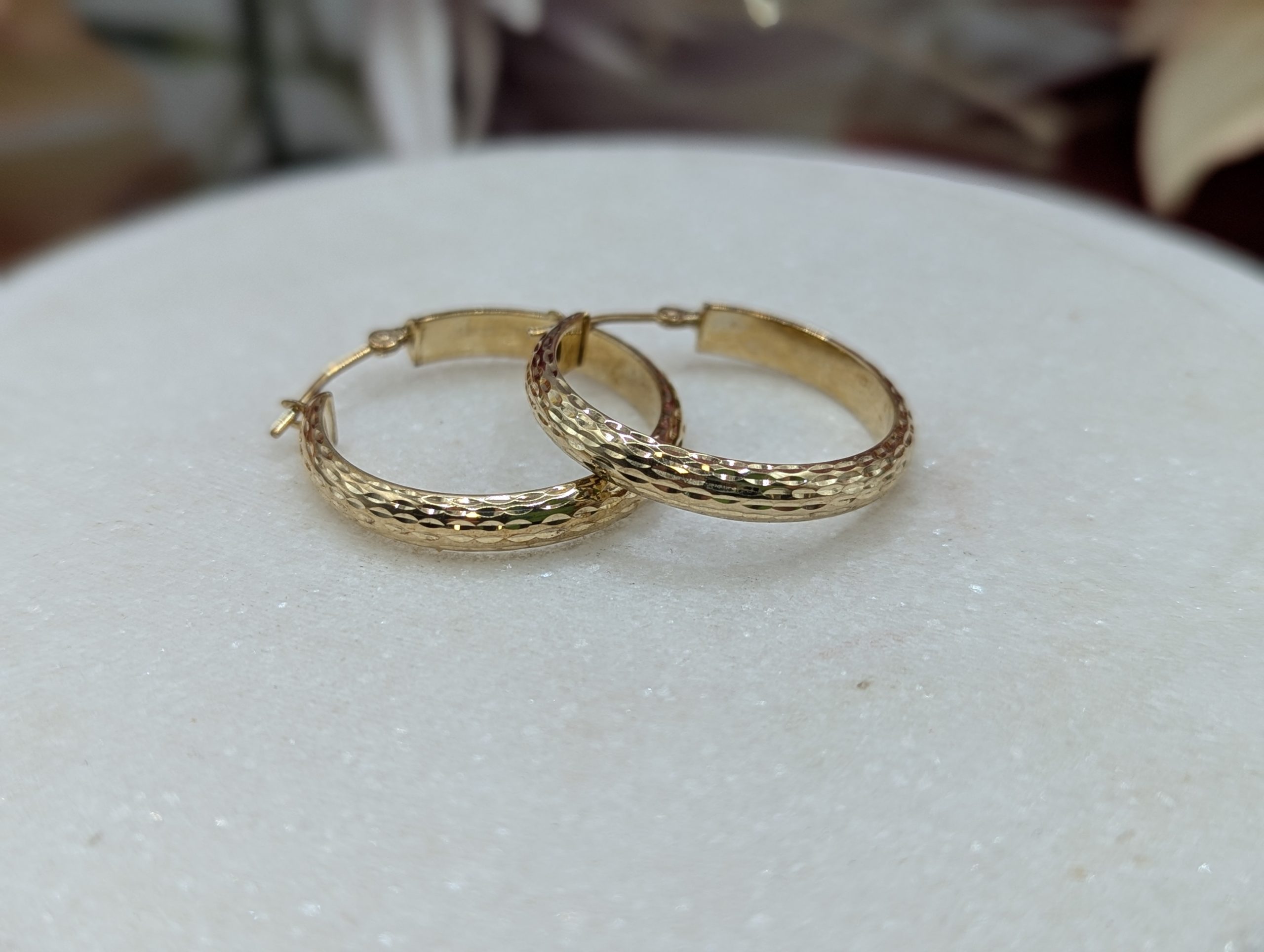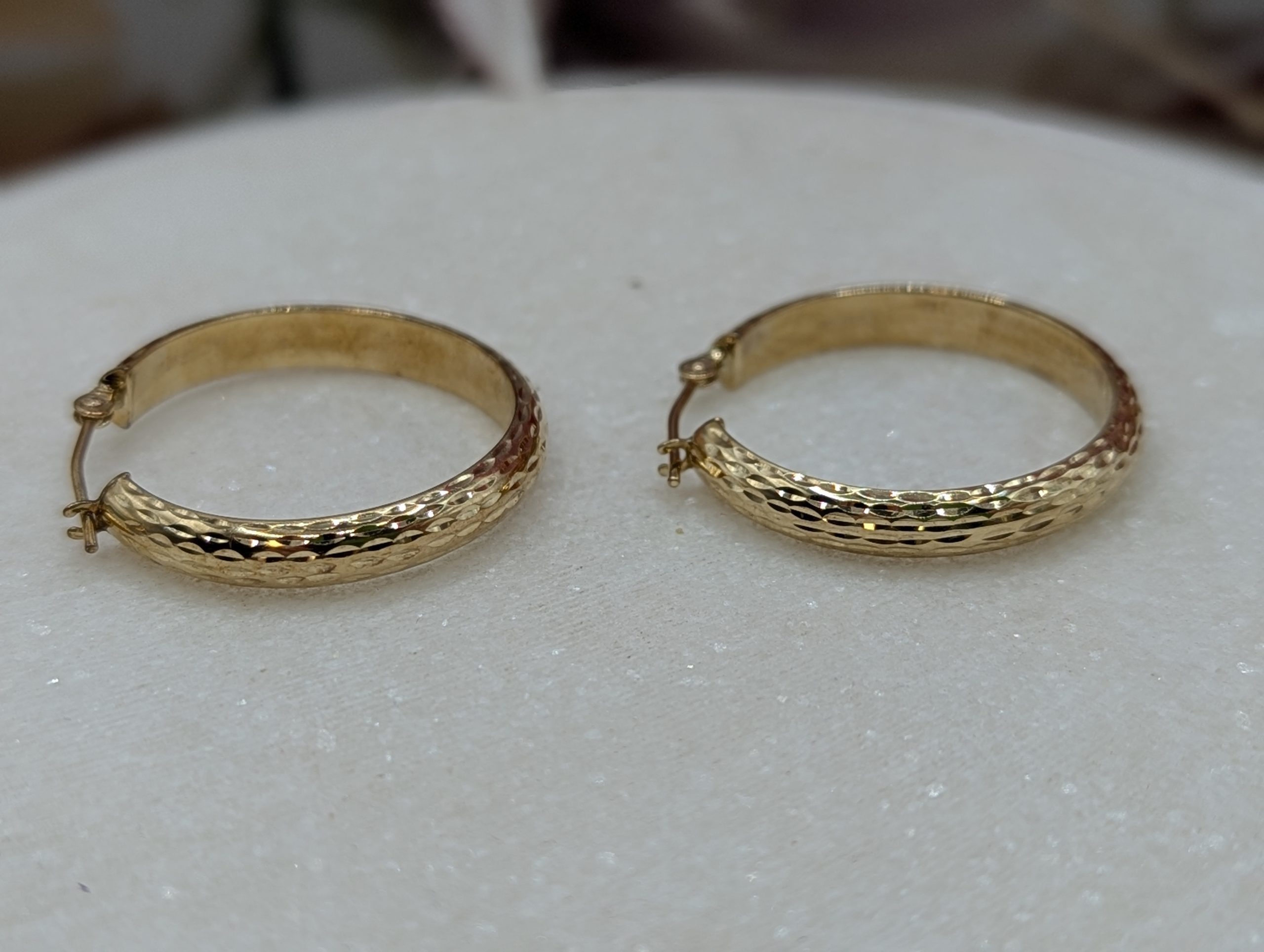 Genuine, Preloved Ladies 9CT Yellow Gold Patterned Hoop Earrings (1.7gms)
