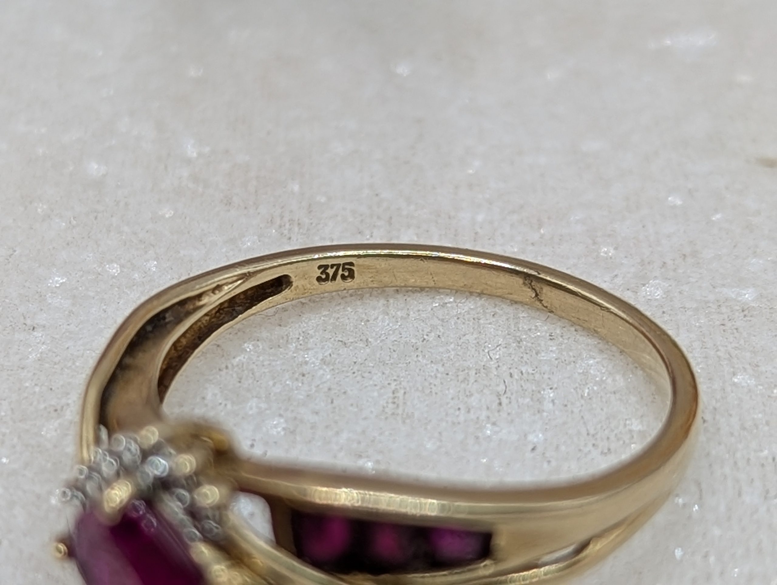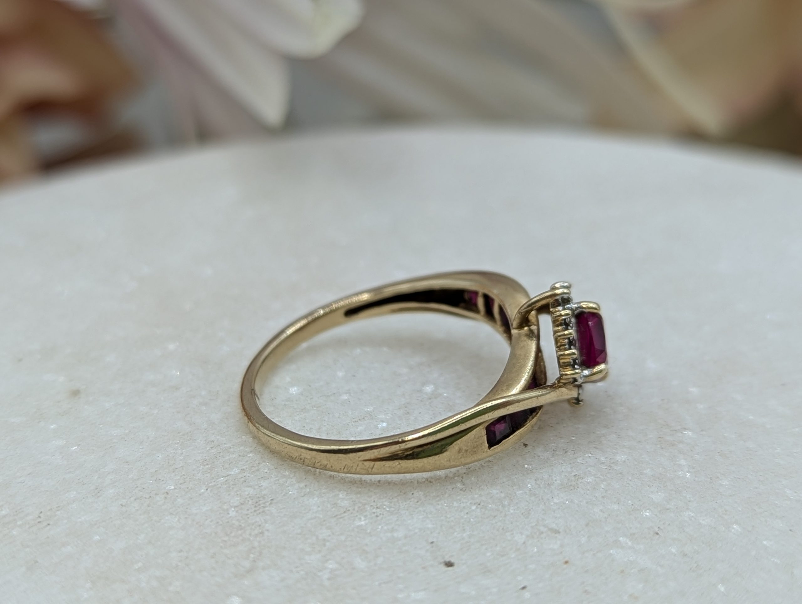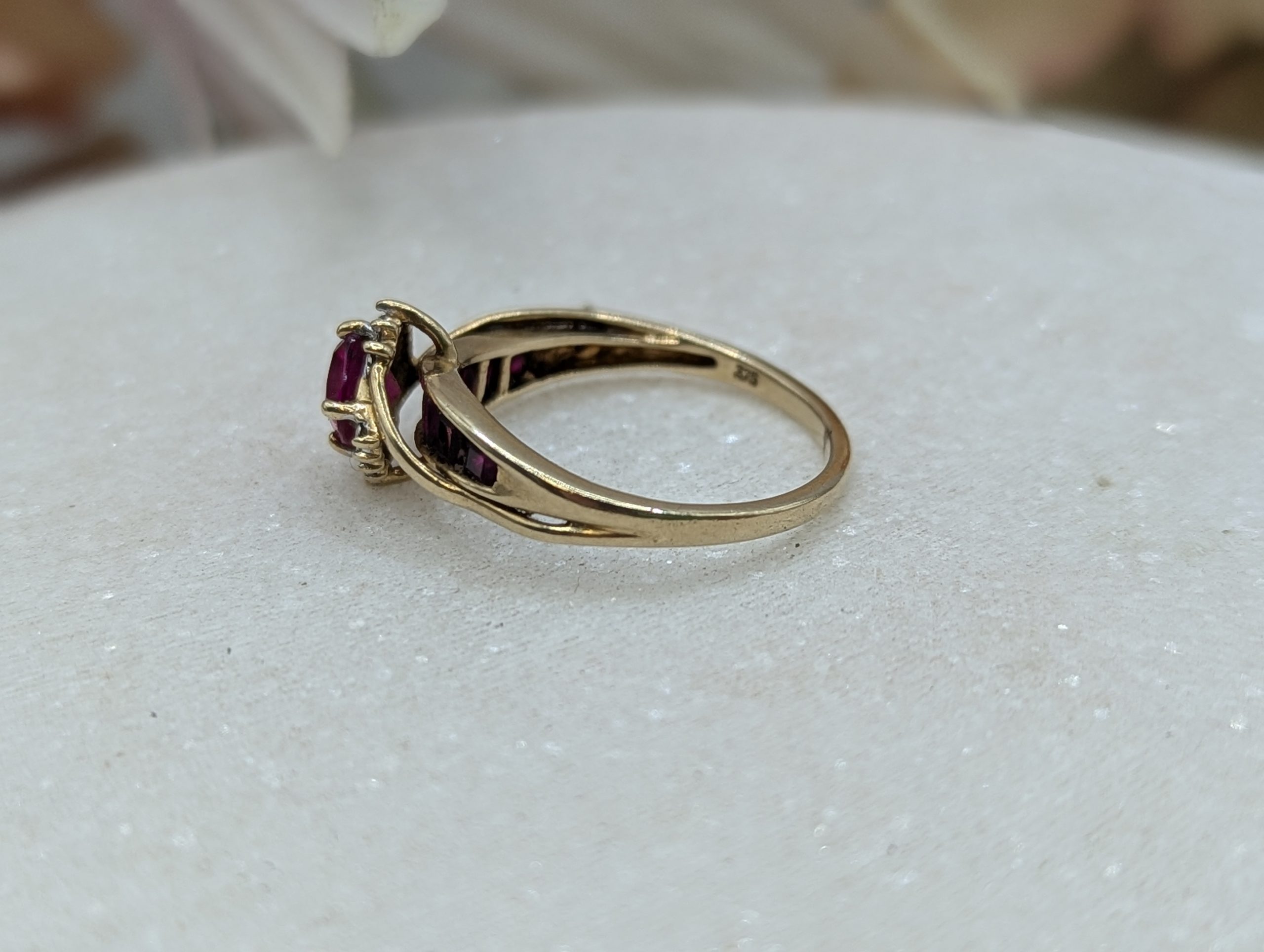 Genuine, Pre-Loved Ladies 9CT Yellow Gold Red and Clear Stone Ring (2.2gms)