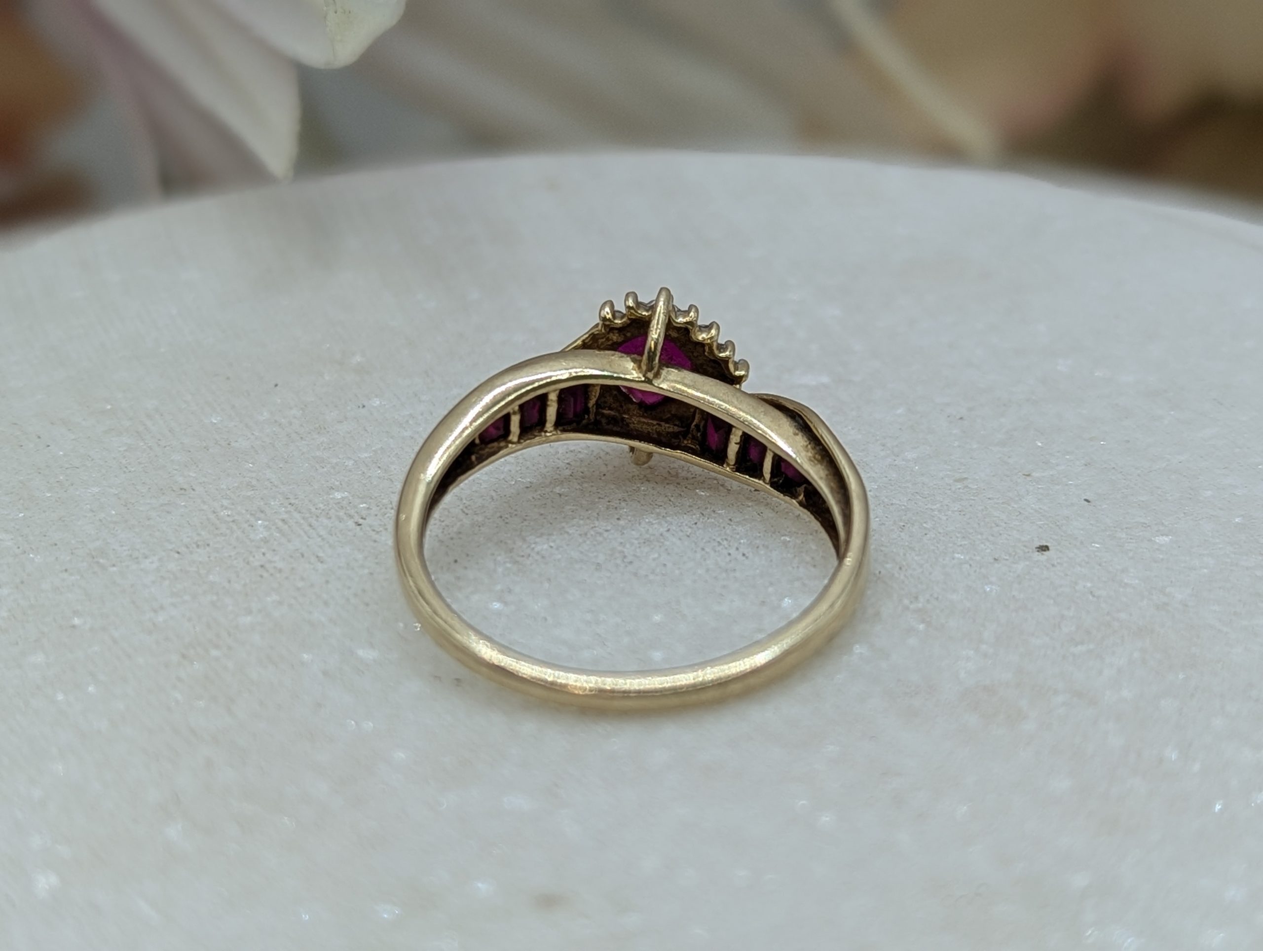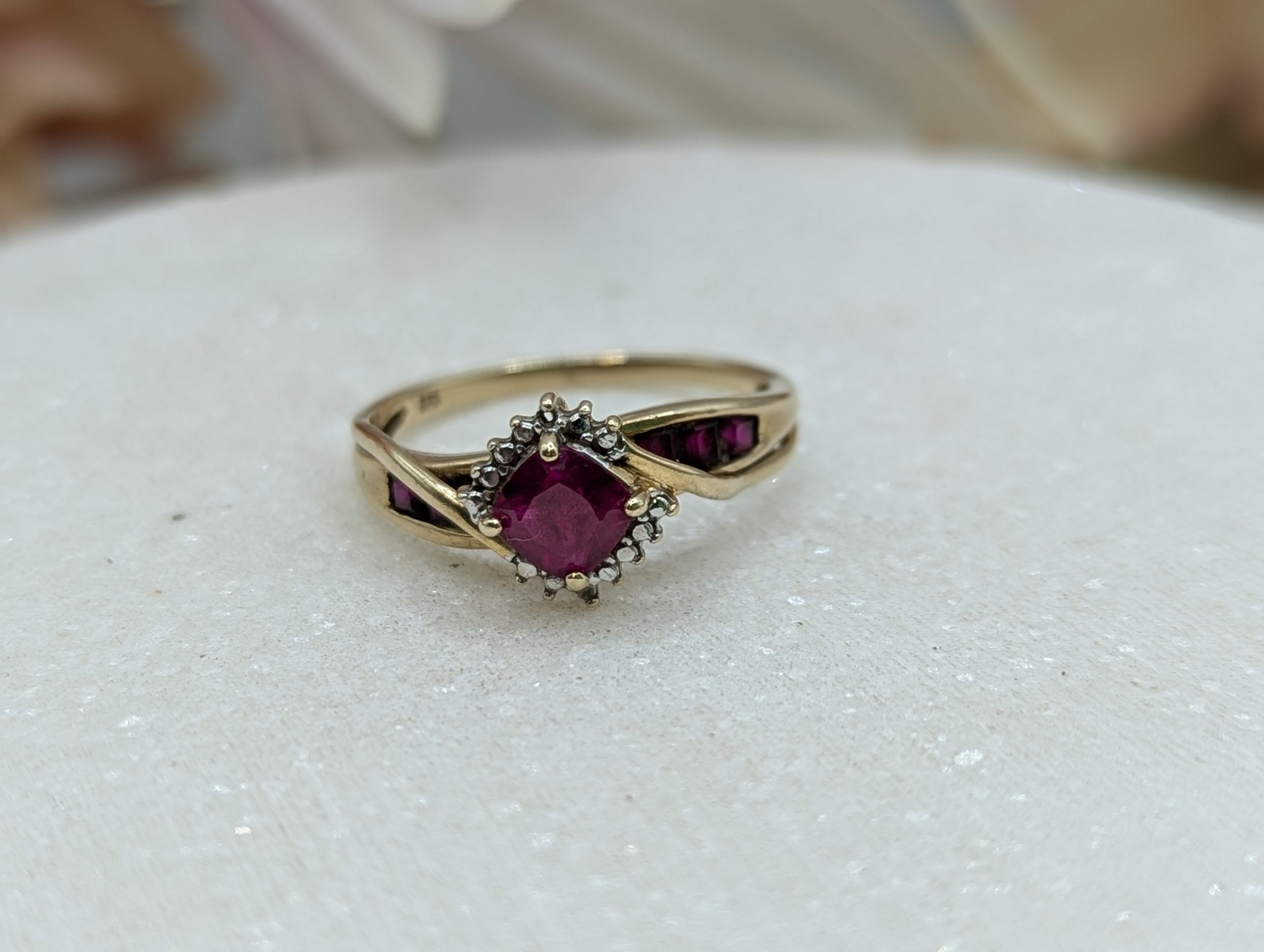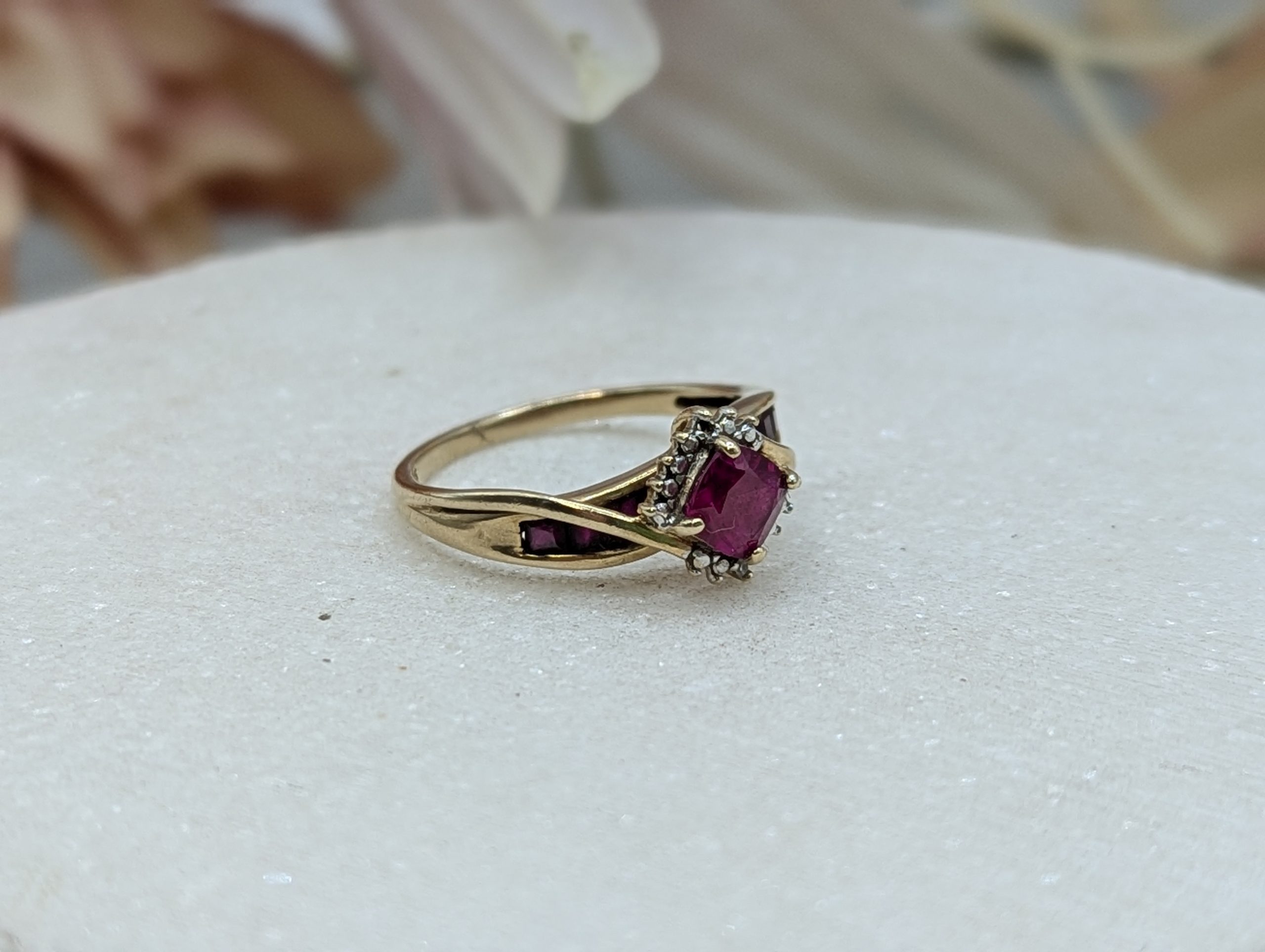 Genuine, Pre-Loved Ladies 9CT Yellow Gold Red and Clear Stone Ring (2.2gms)