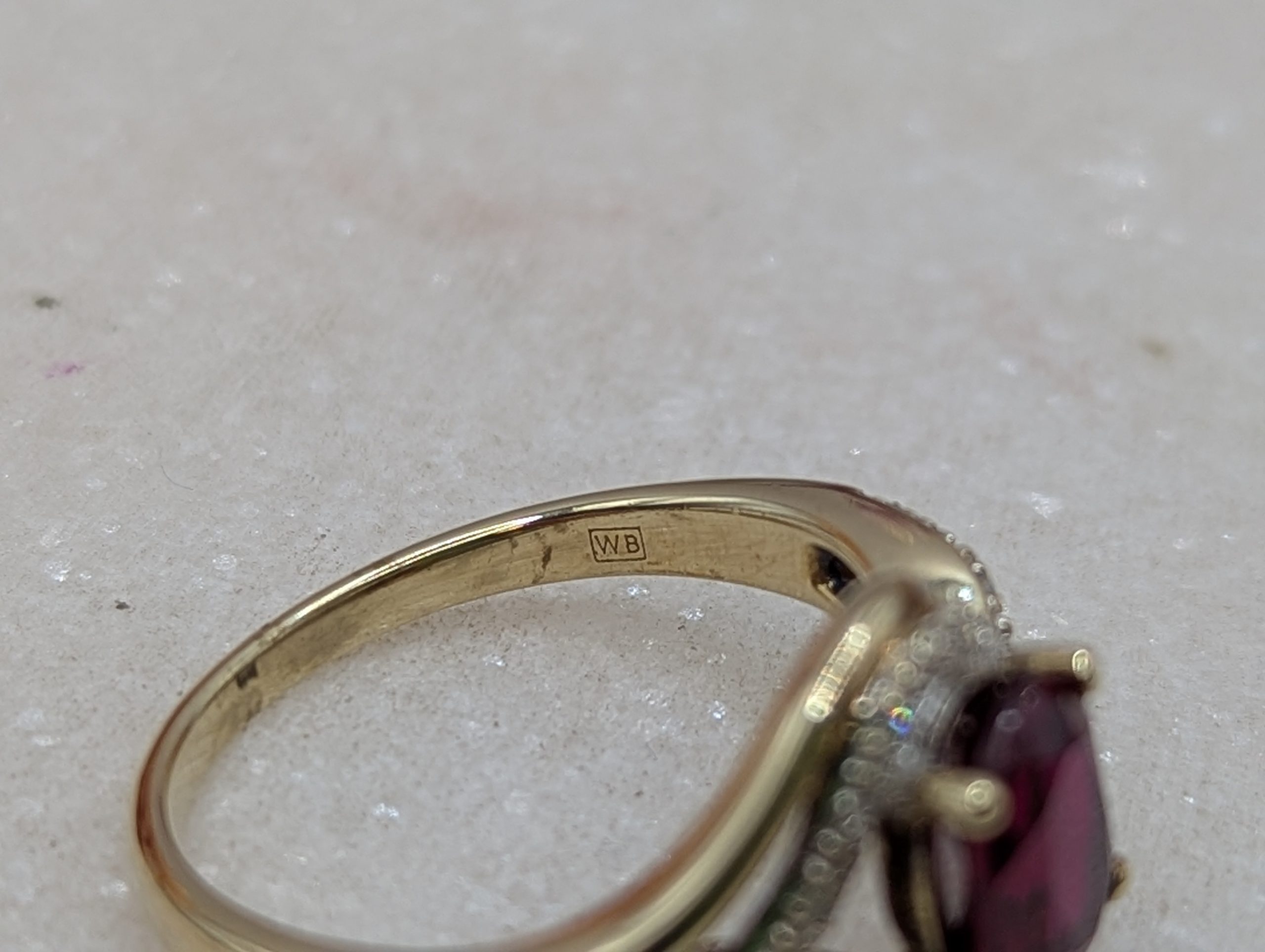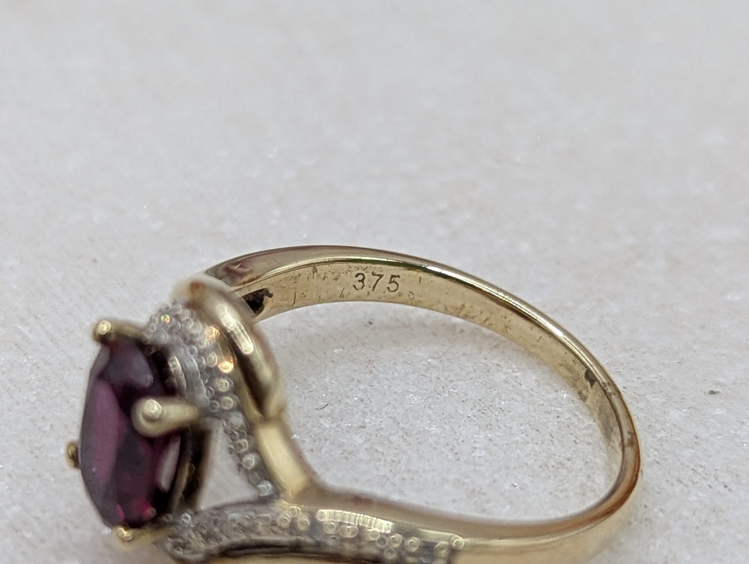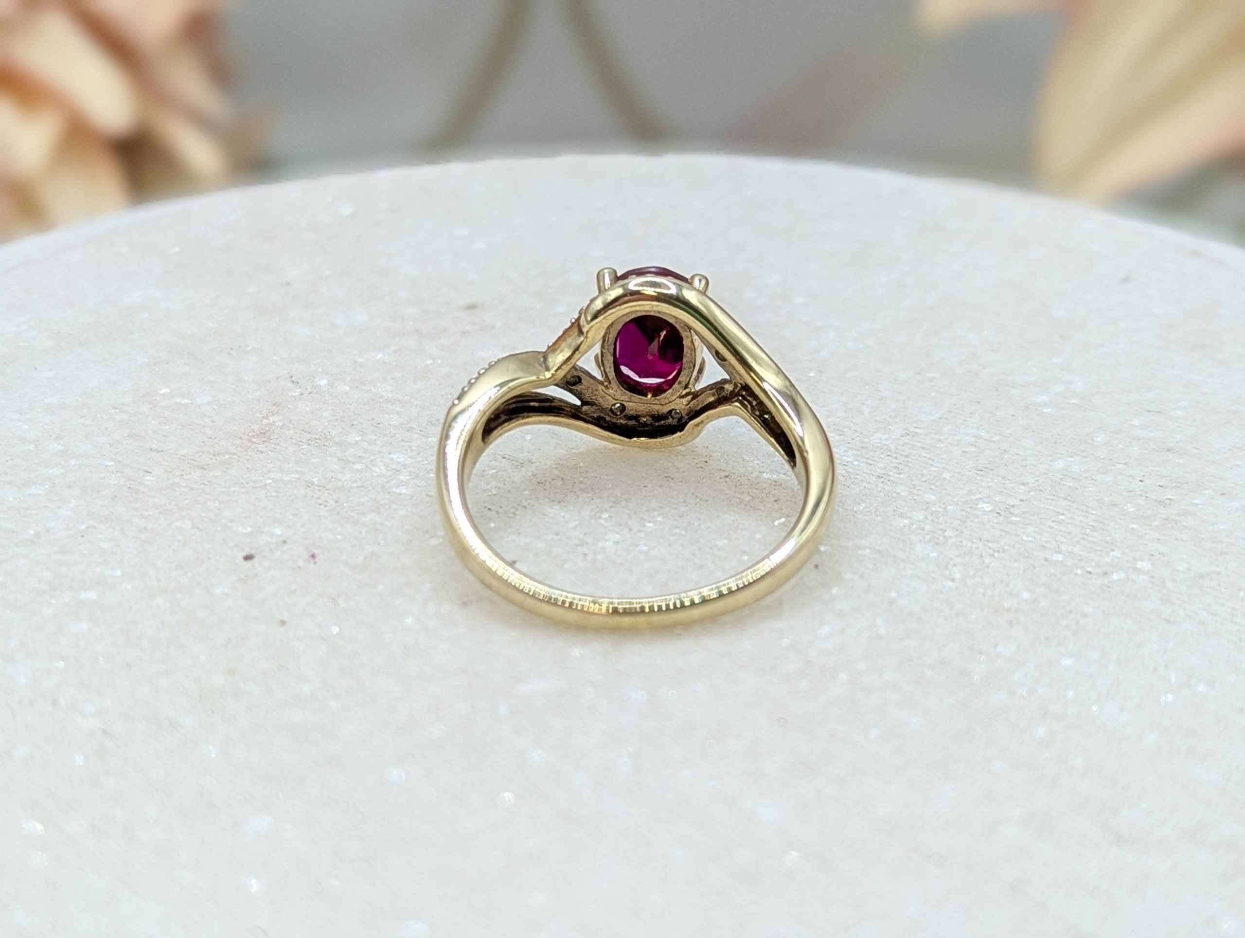 Genuine, Pre-Loved Ladies 9CT Yellow Gold Red Stone & Diamond Ring (3.35gms)
