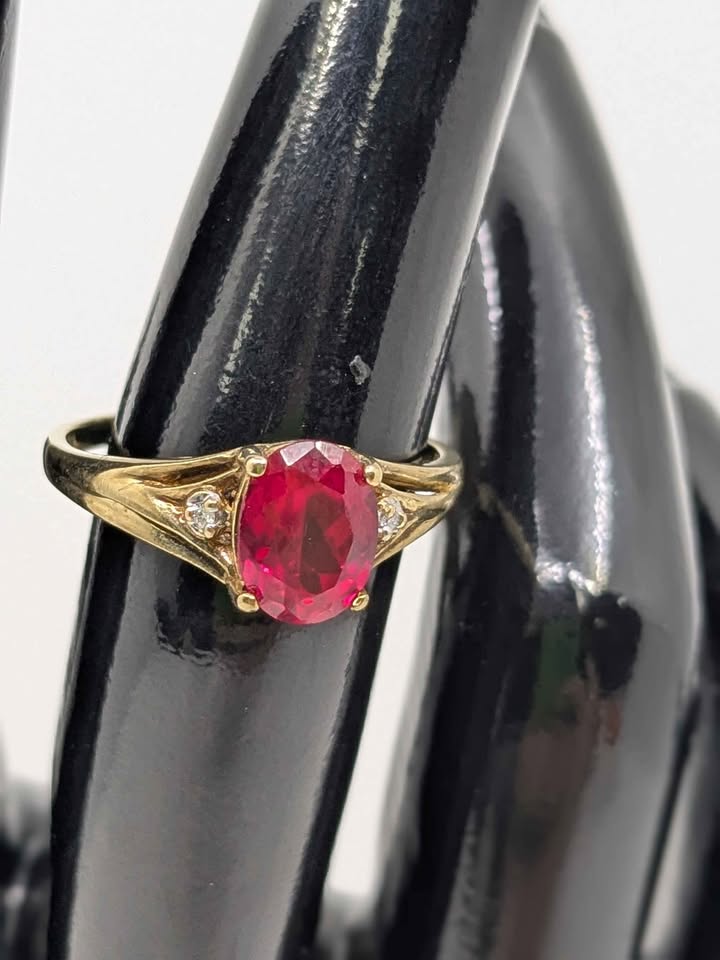 Ladies 9ct Yellow Gold Ring with Red Gemstone – BL391306-1