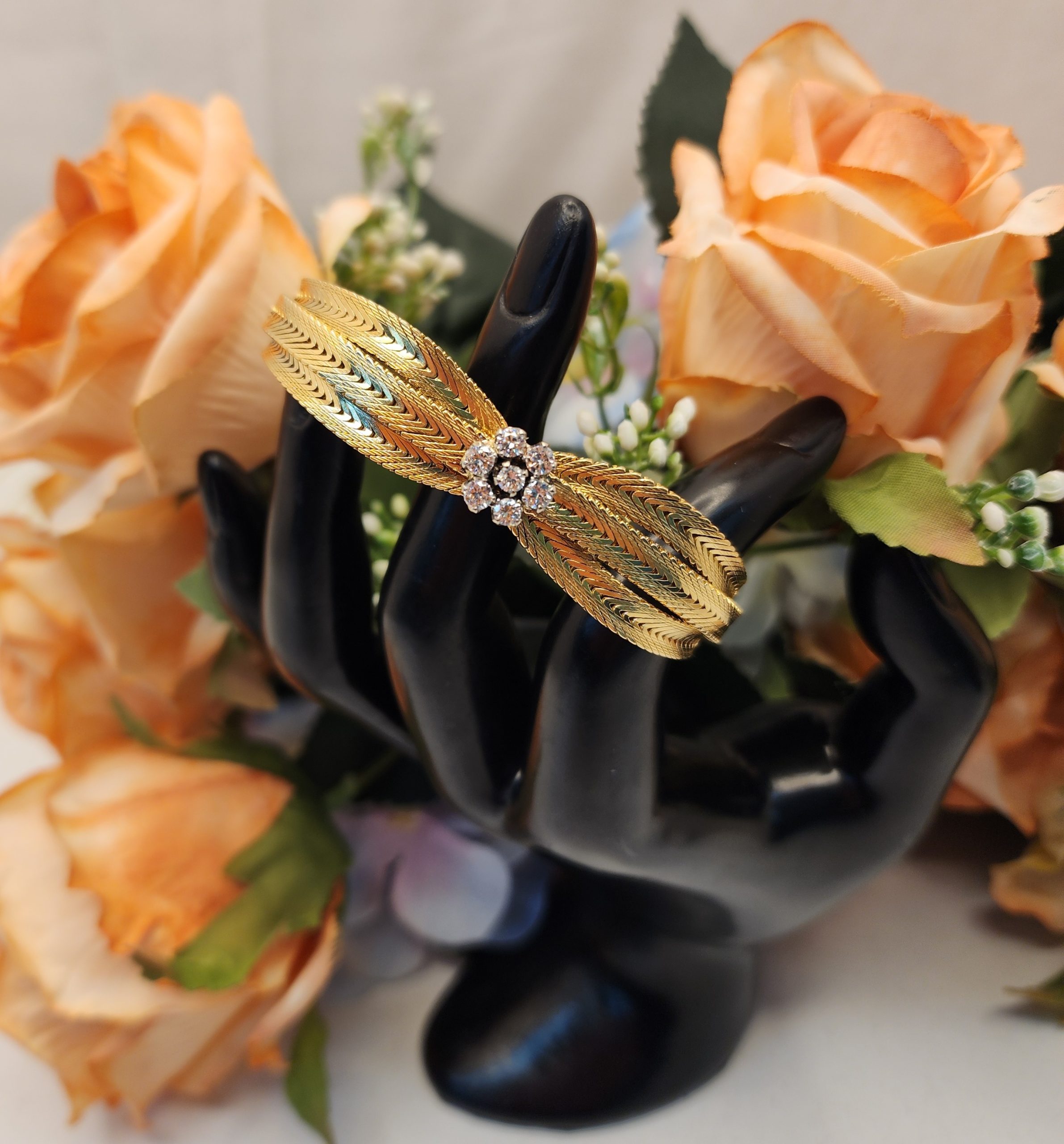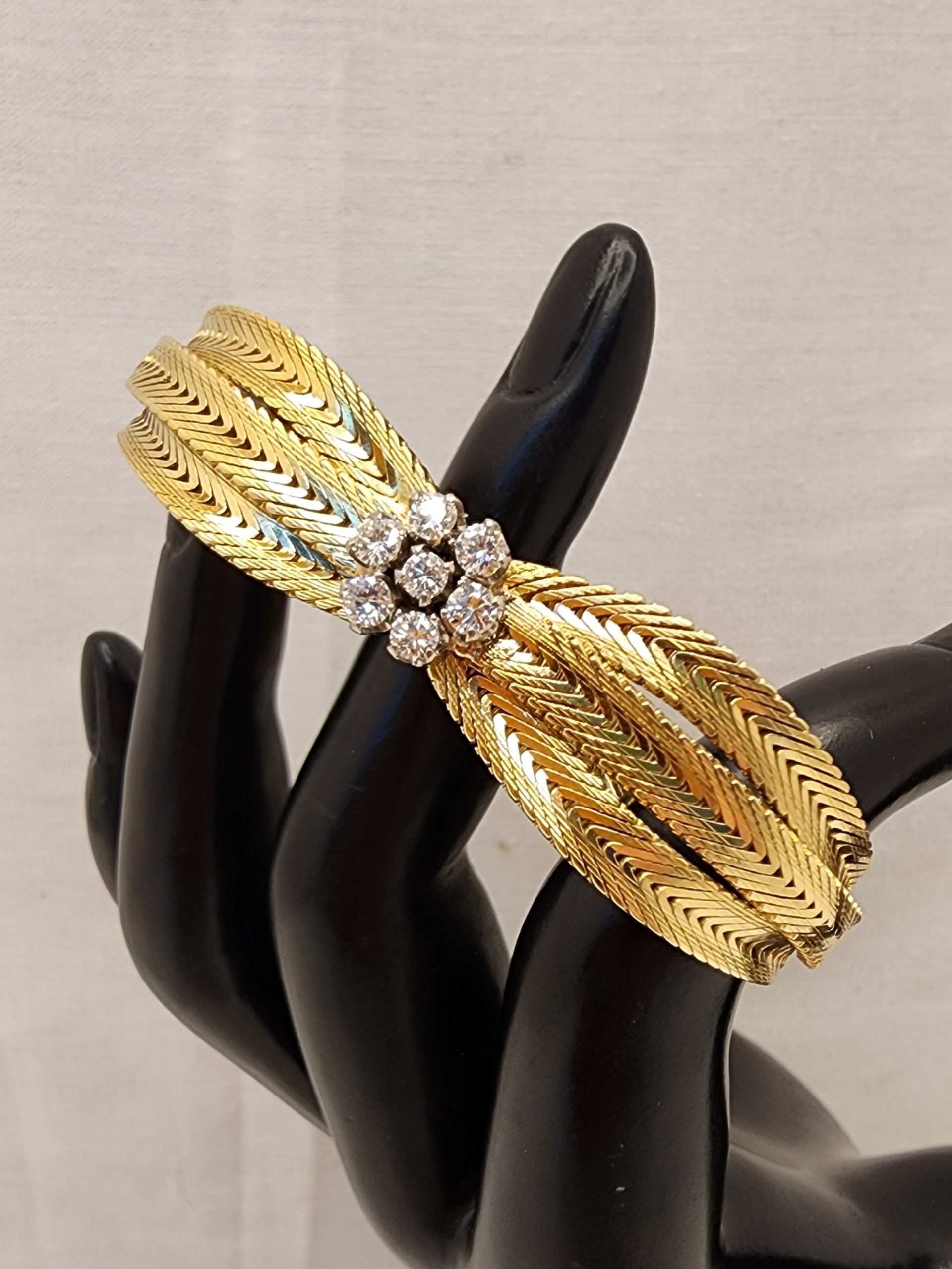 Ladies Vintage 18CT Yellow Gold Mesh Bracelet with Diamonds – IP371656