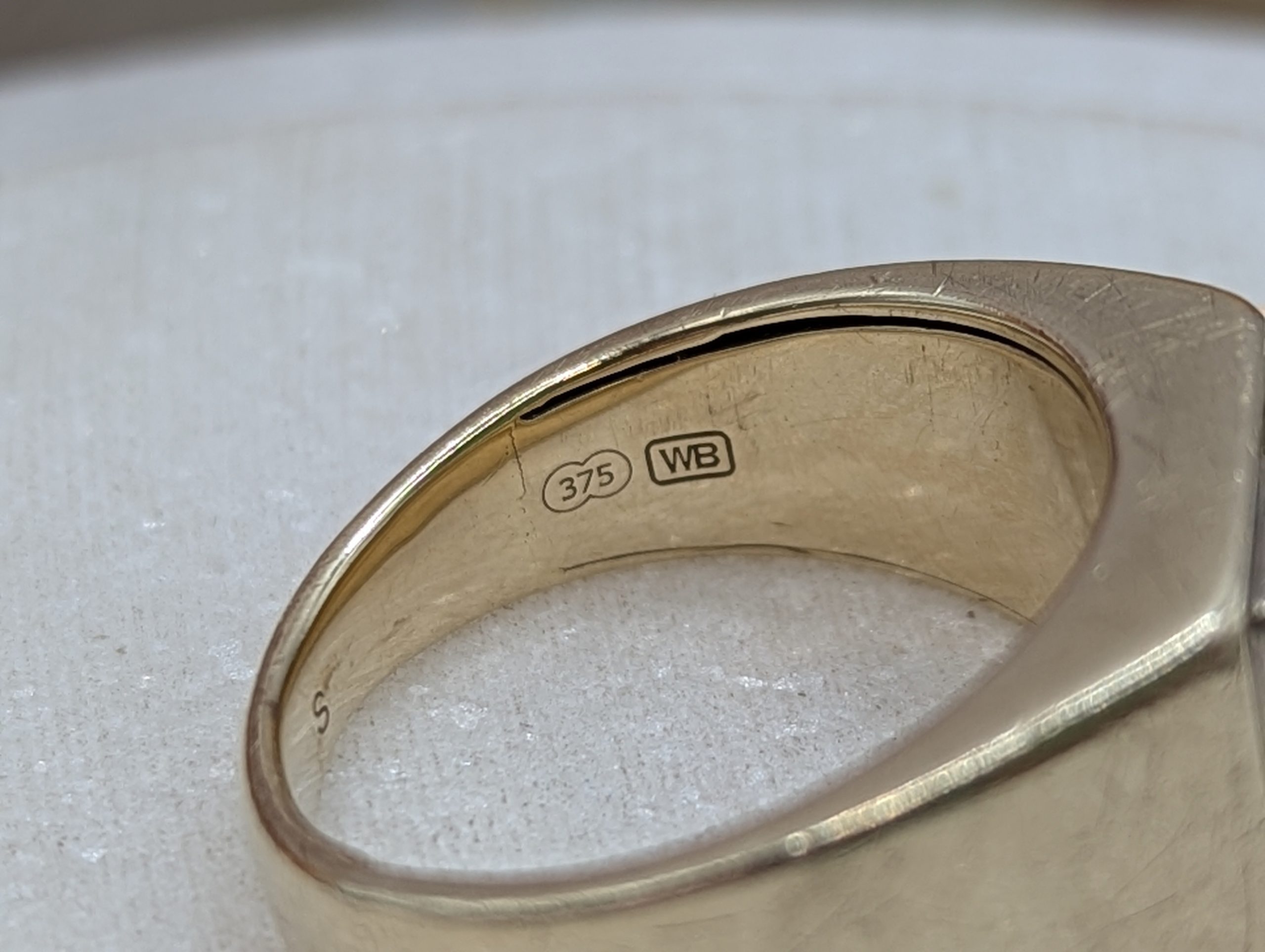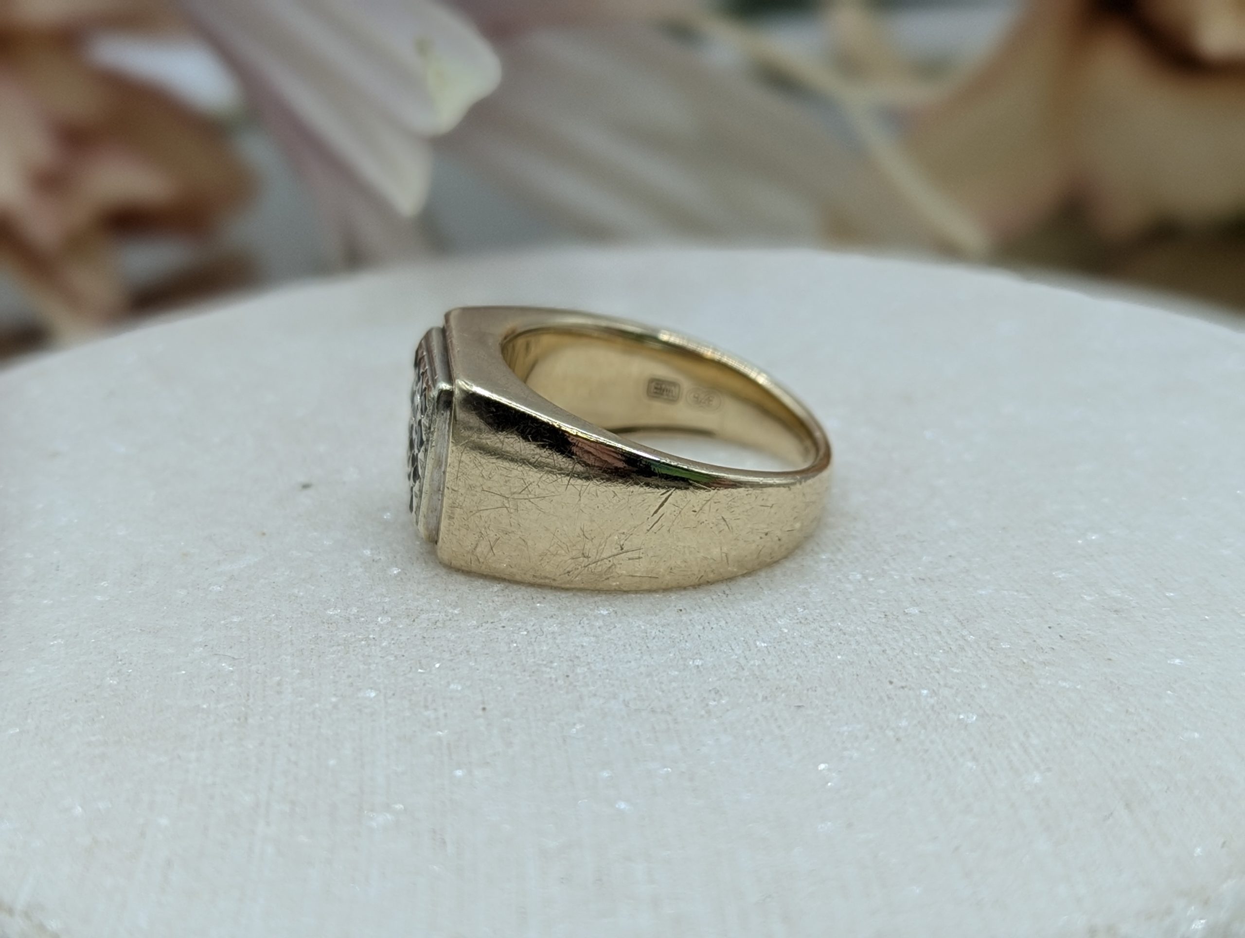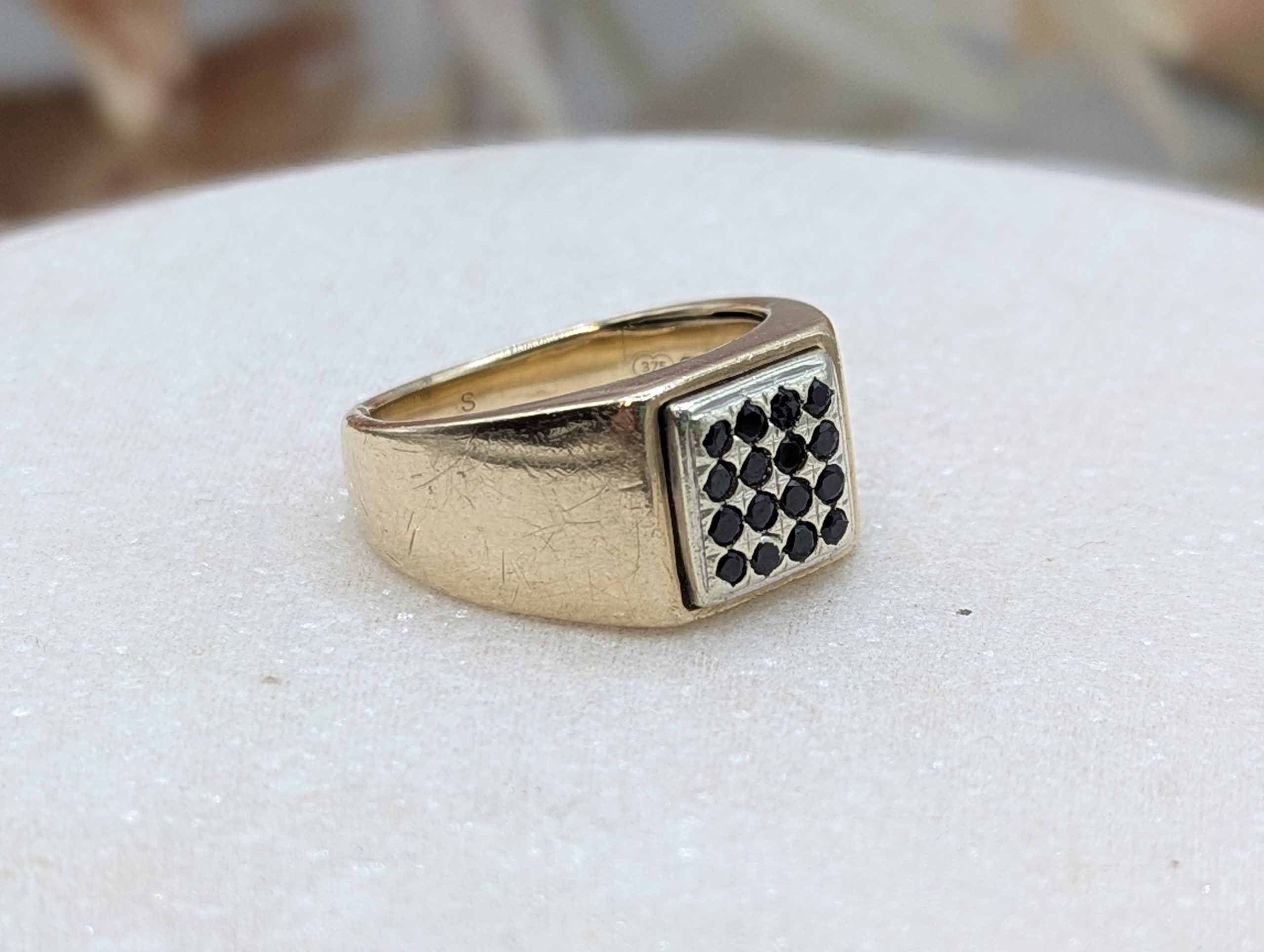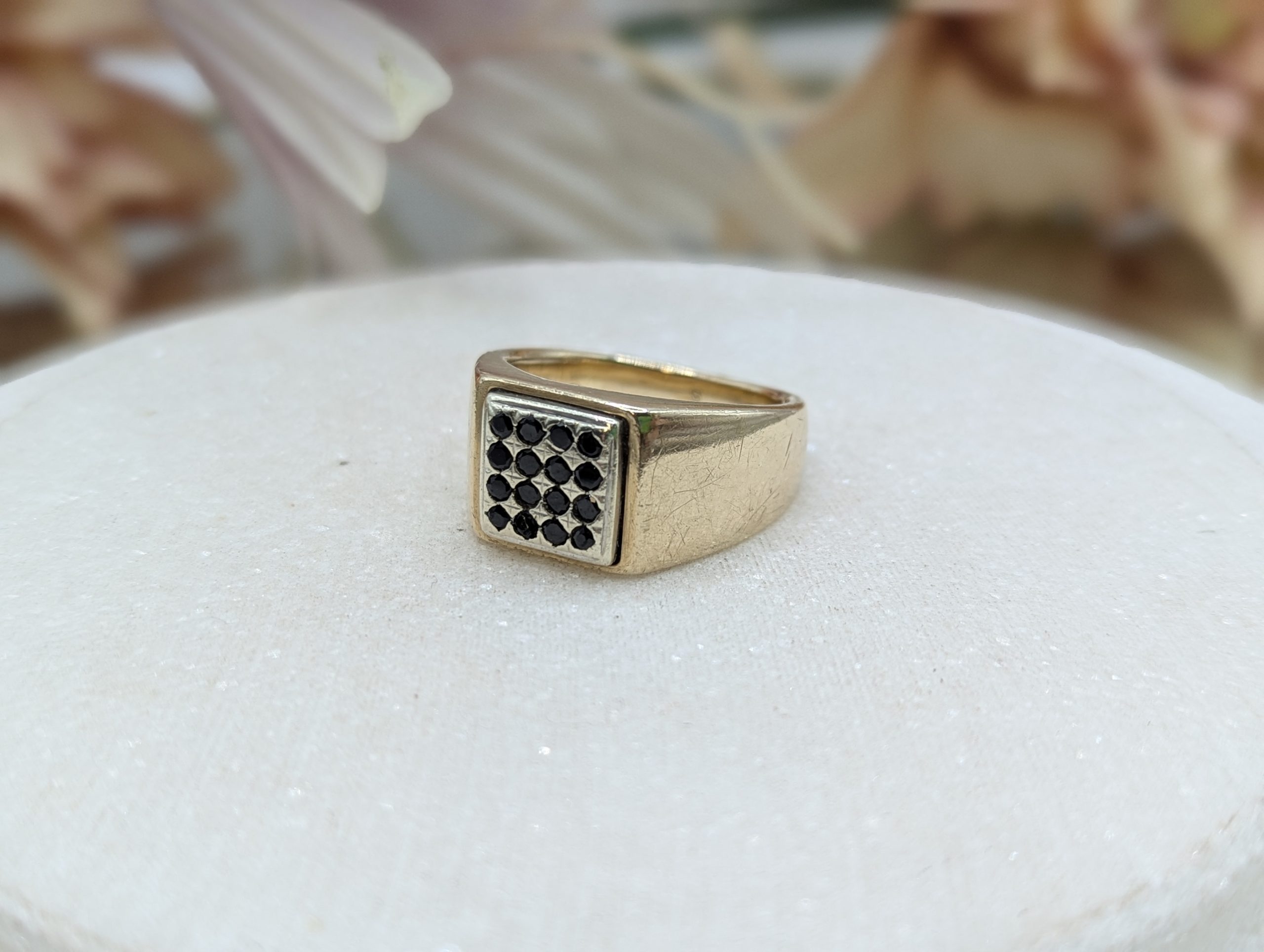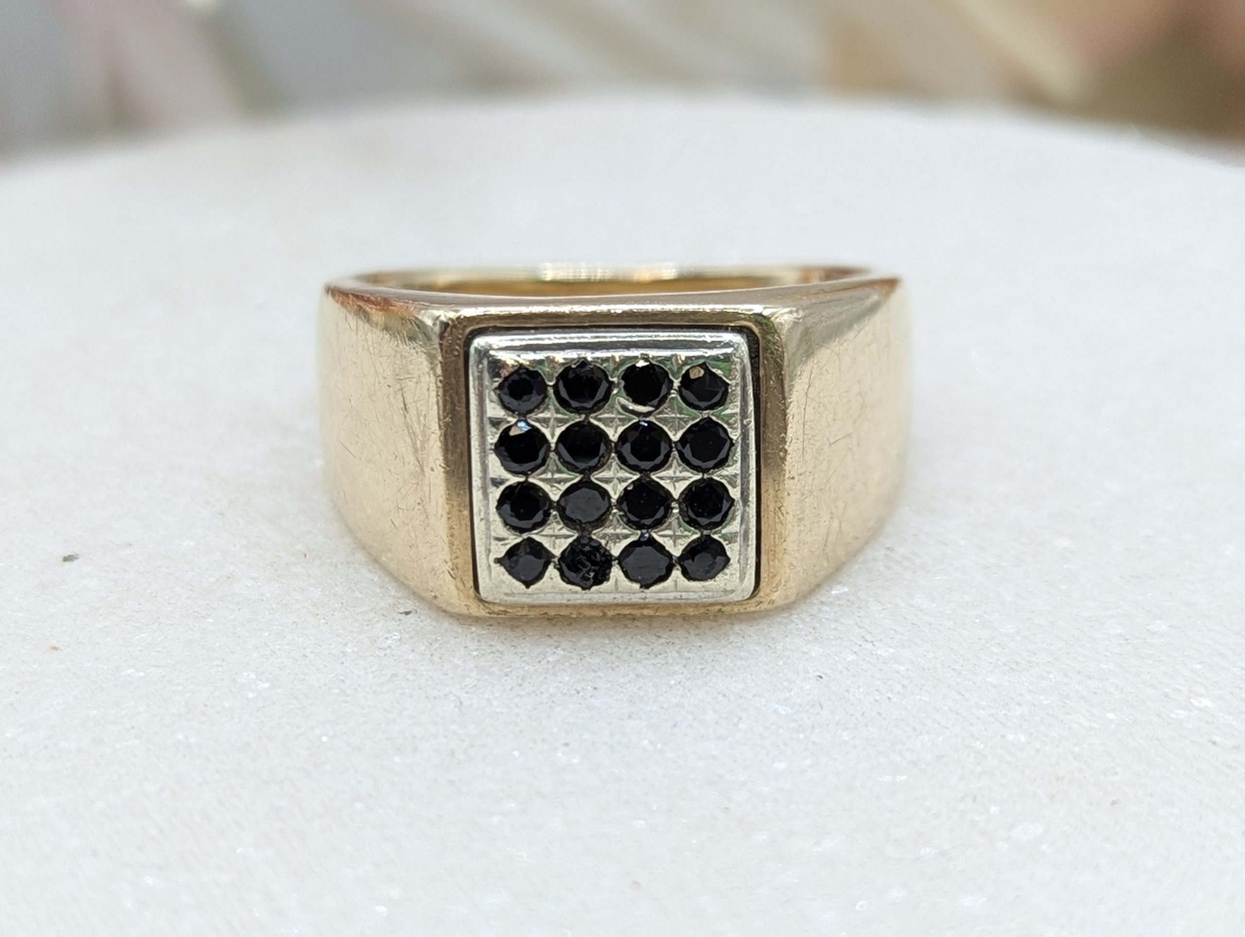 Genuine, Pre-Loved Mens 9CT Yellow Gold Black Stone Signet Ring (8.7gms)