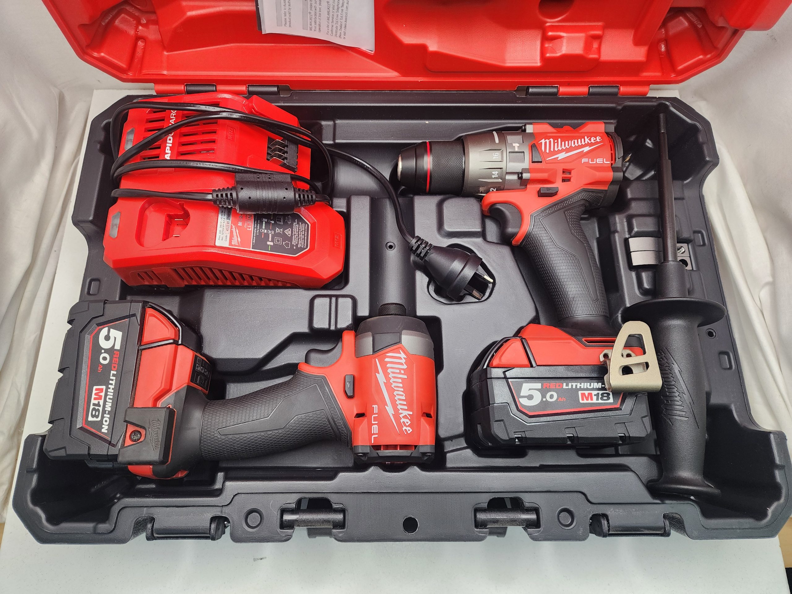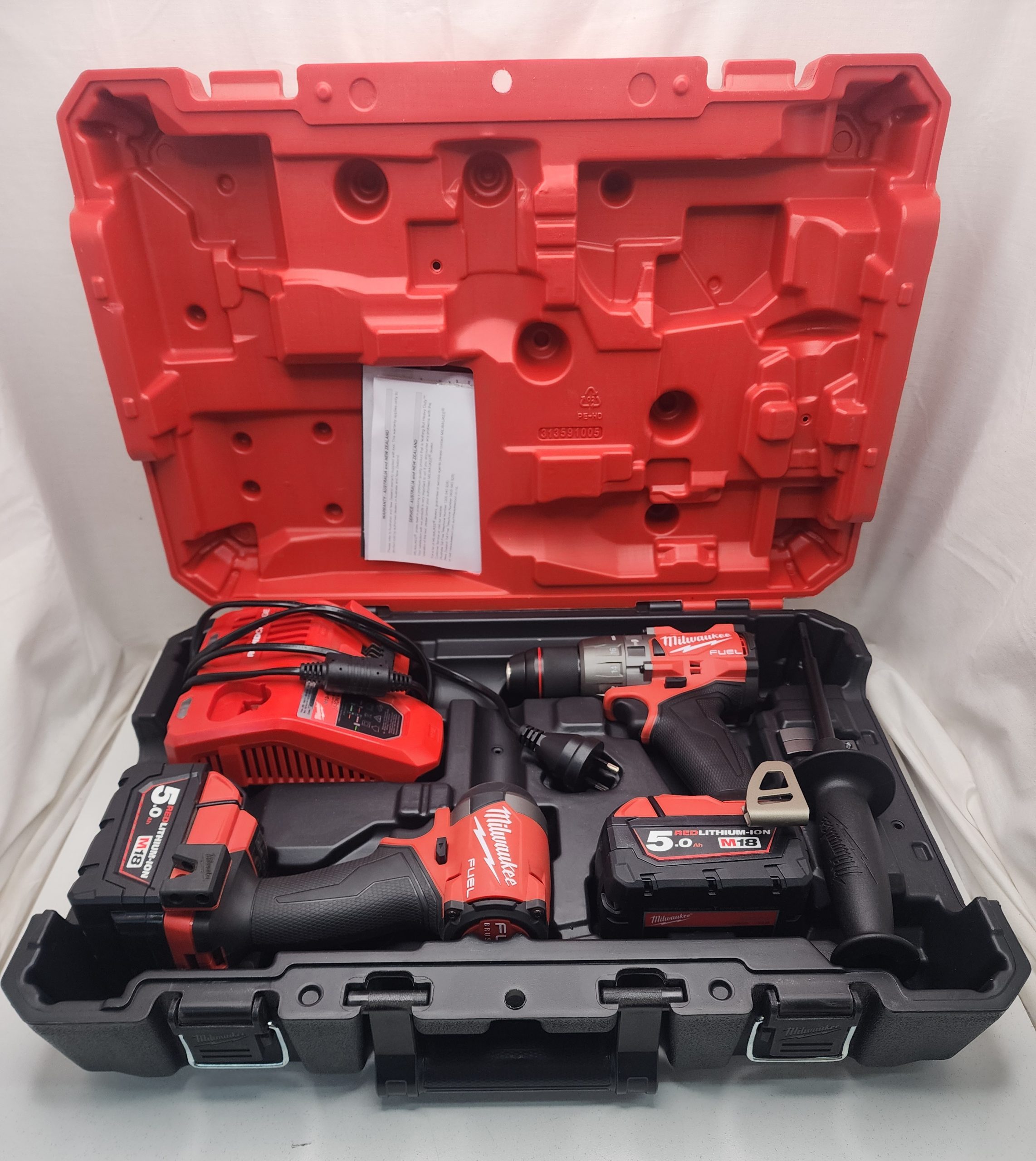 Milwaukee Drill Kit Hammer Drill – Impact Driver – Rapid Charger – 2x 5.0Ah Battery – IP403265