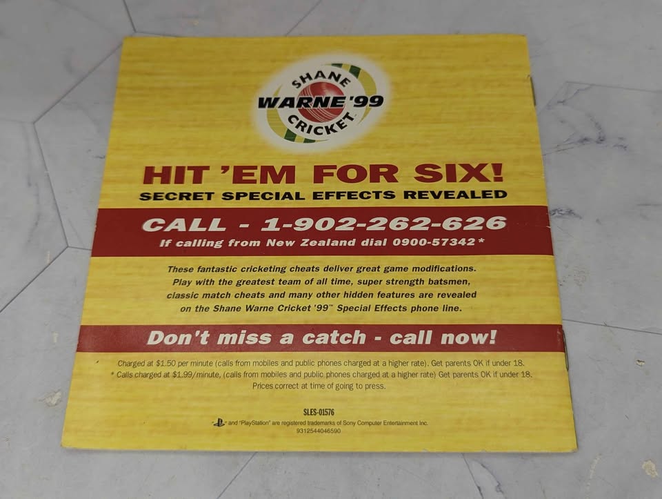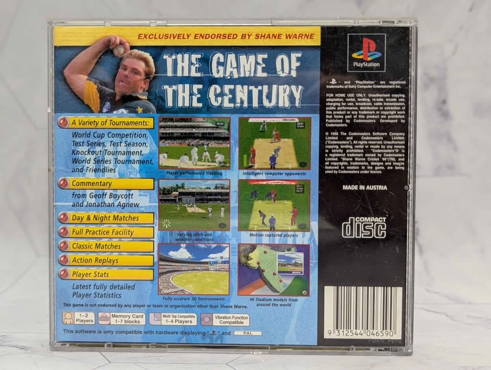 Genuine, Pre-Loved PlayStation 1 Shane Warne ’99 Cricket Video Game