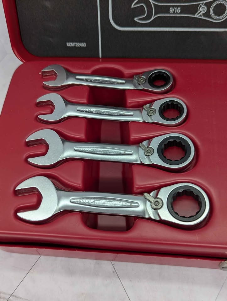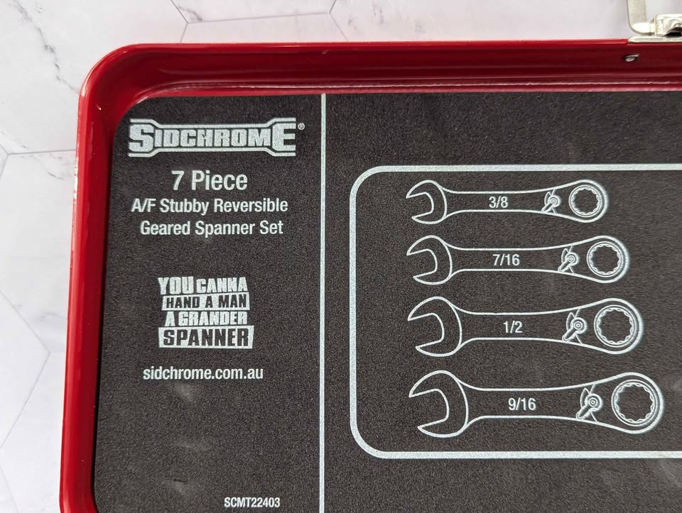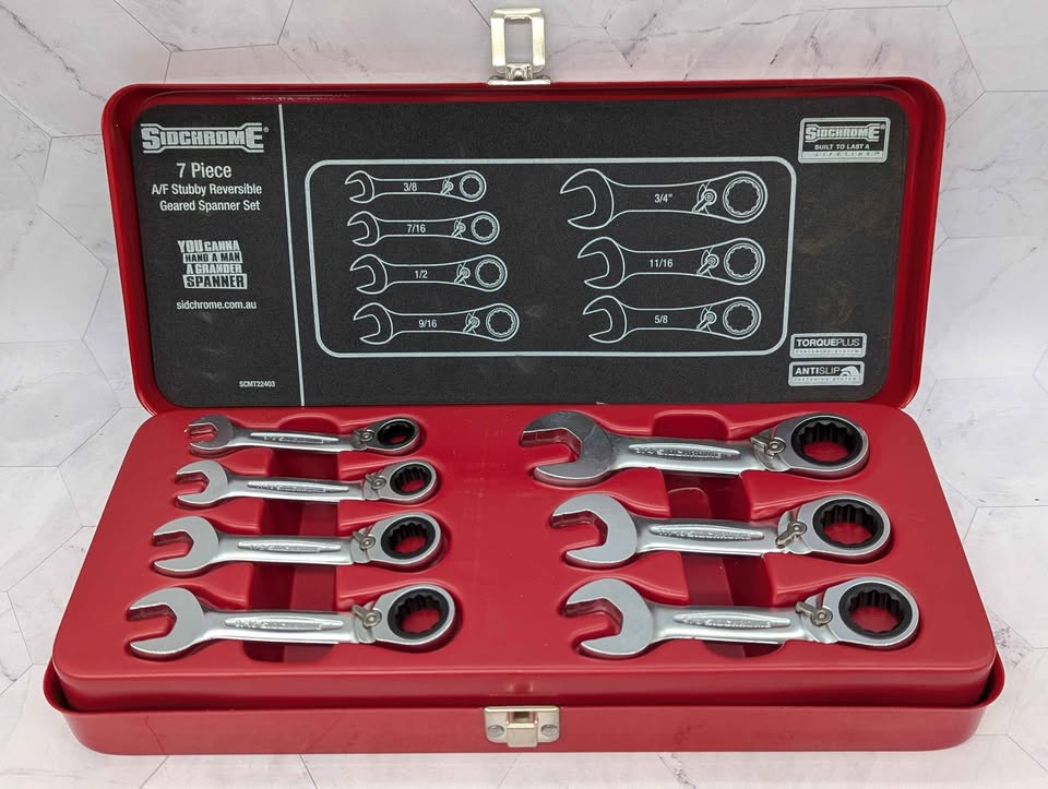 Genuine, Pre-Loved Sidchrome 7 Pce A/F Stubby Reversible Geared Spanner Set