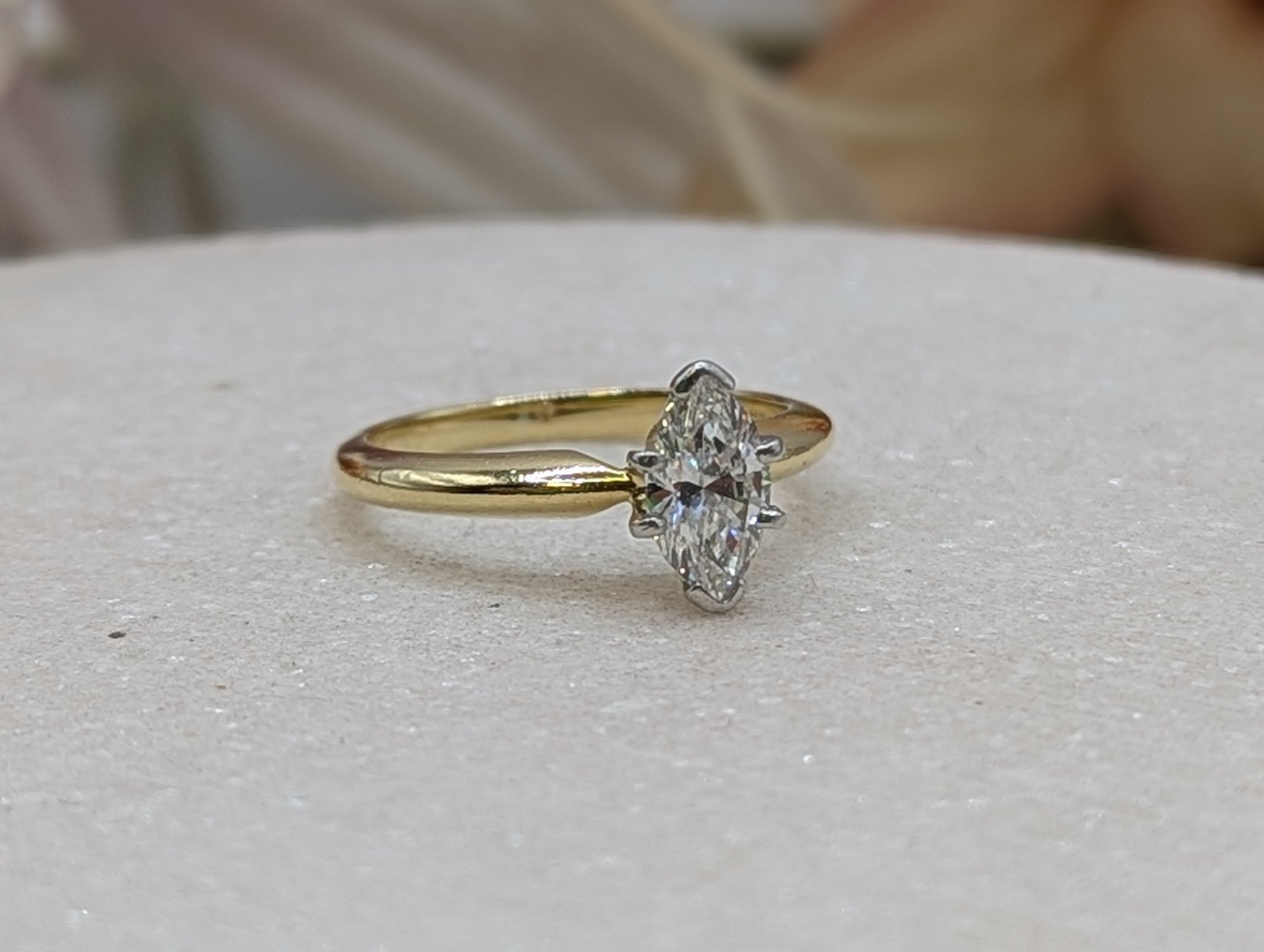 Stone Colour: 1 x Marquise Brilliant Cut (H Colour)