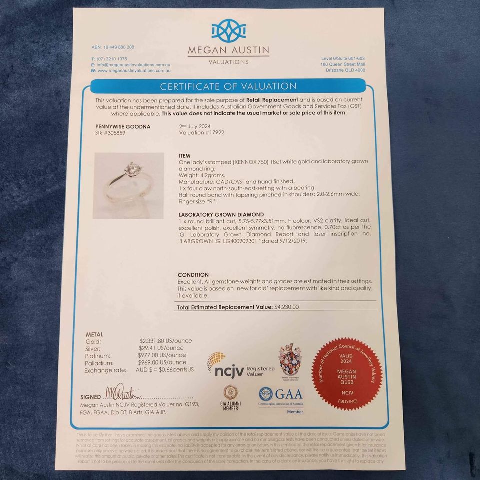Comes with Valuation- $4230.00